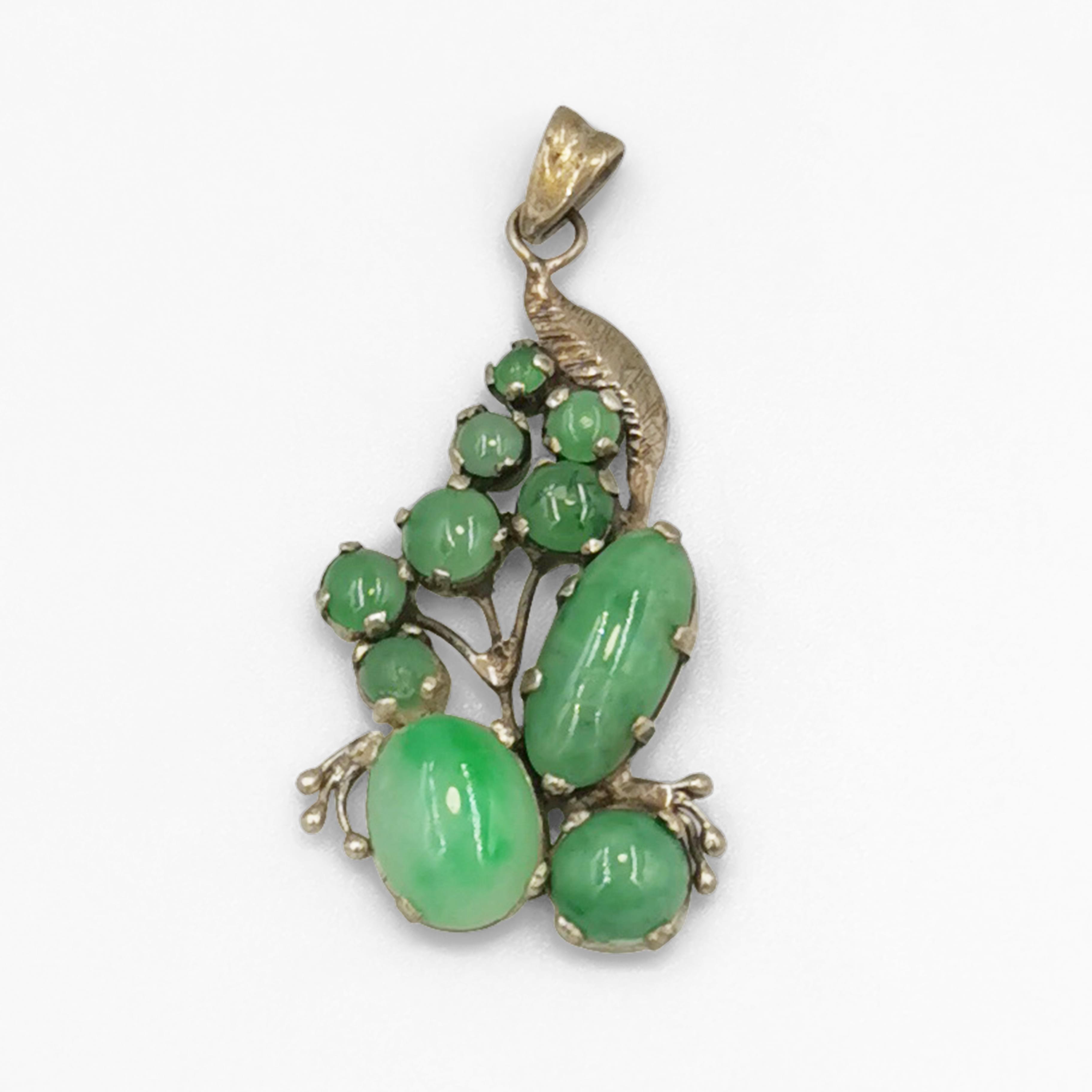 5300. Pendentif ajouré à décor feuillagé serti de cabochons de jadeite