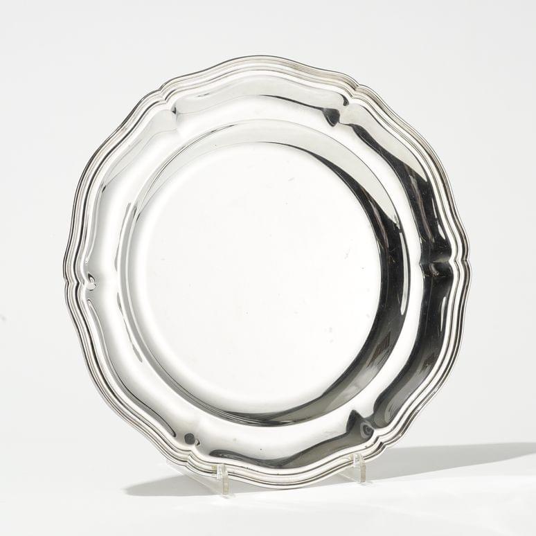 202. Grand plat ovale festonné, armoiries Saladin gravées sur le marl...