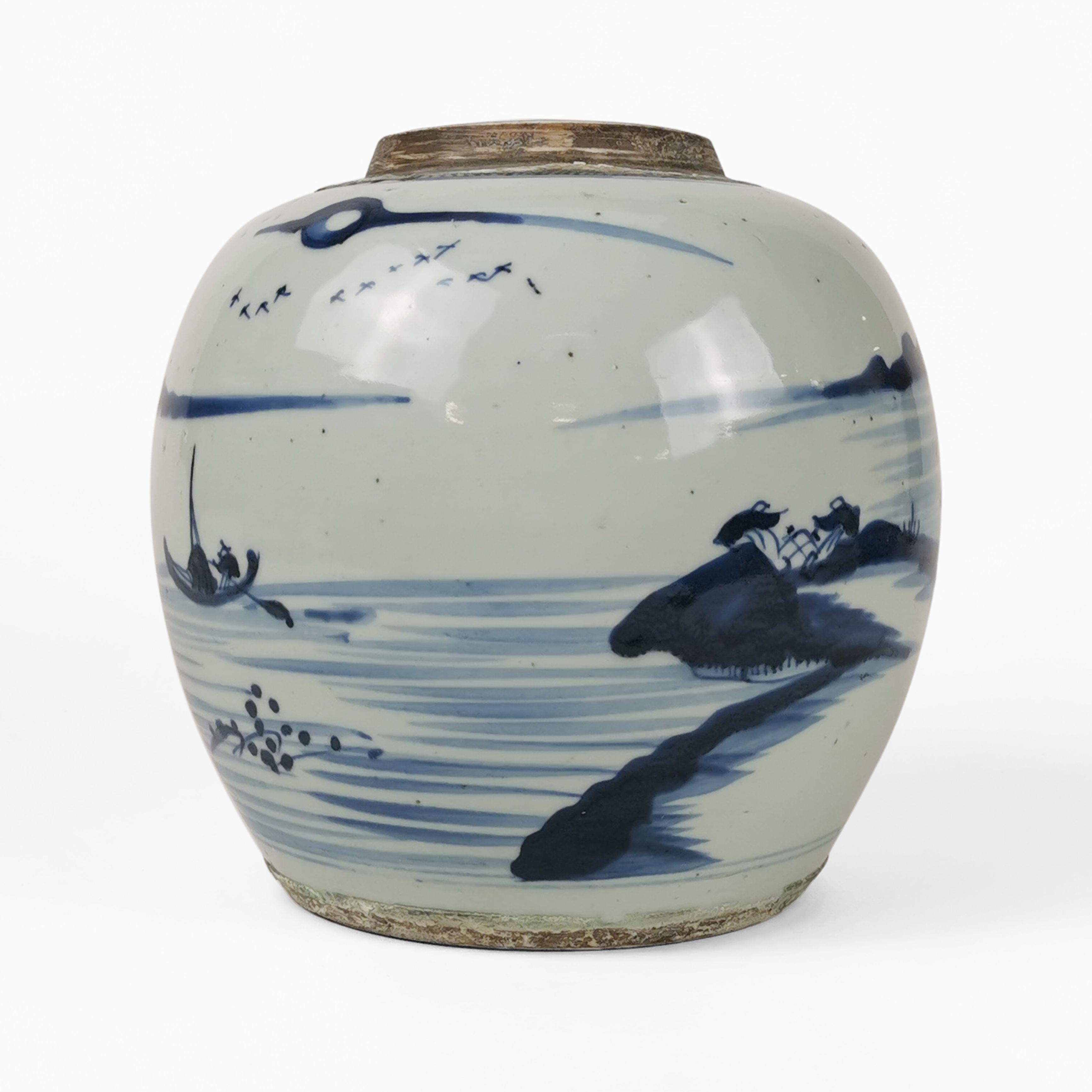 Porcelaine émaillée bleu blanc à décor de paysage, H 20 cm