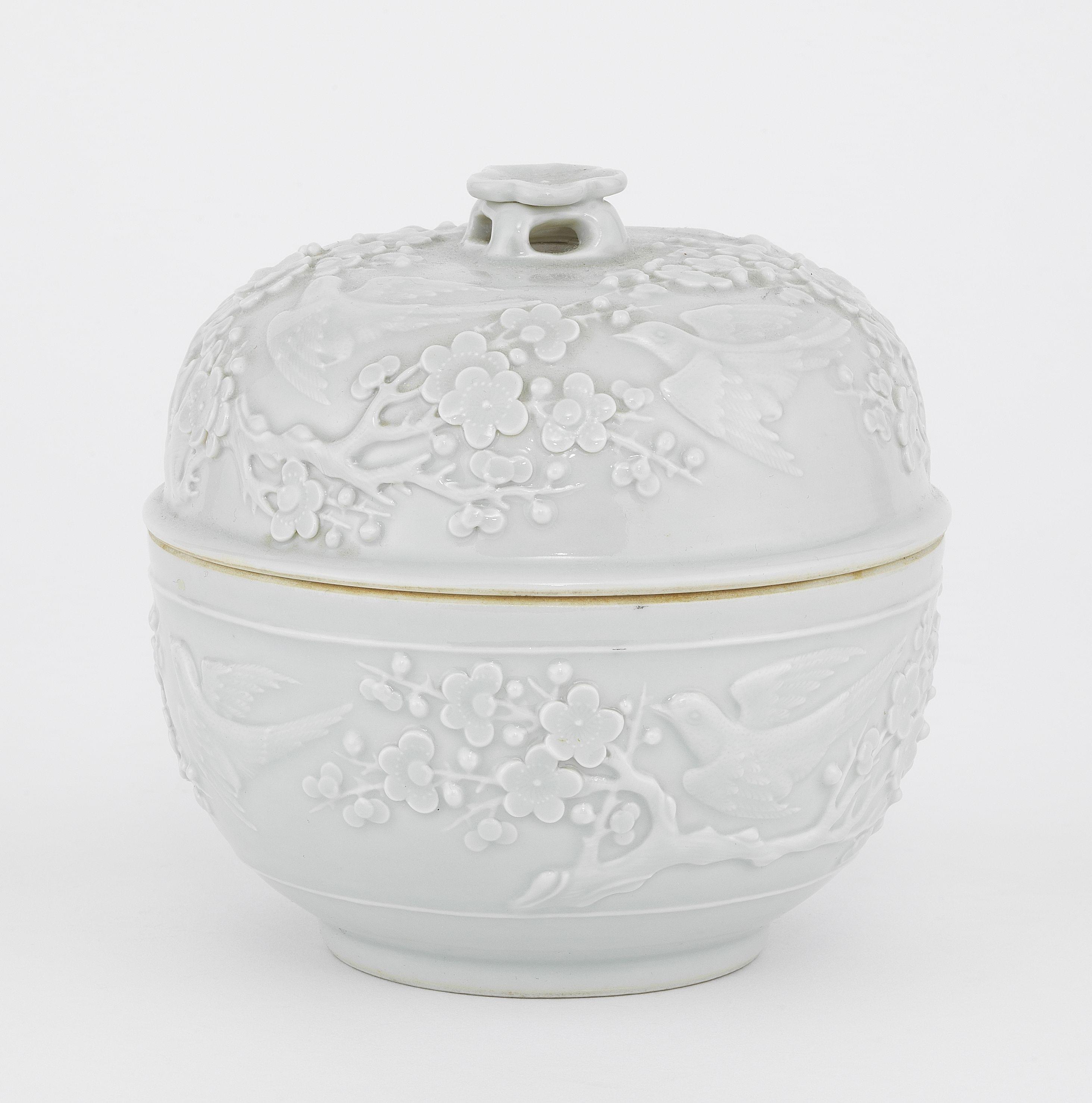 Porcelaine blanche à motif incisé de dragons poursuivant la perl...