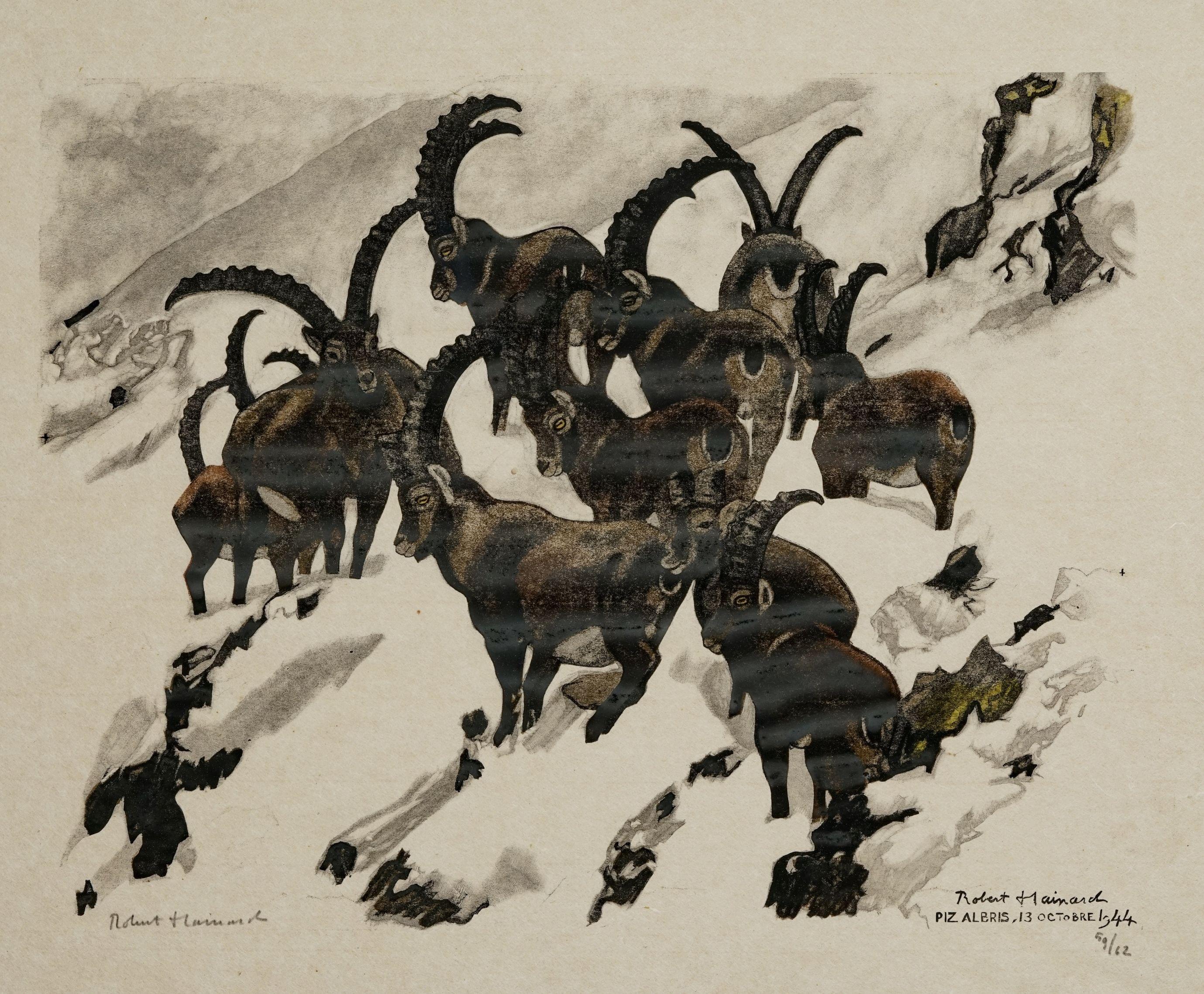 Piz Albris, 13 octobre 1944, bois gravé signé et numéroté 59/62, 39x48 cm