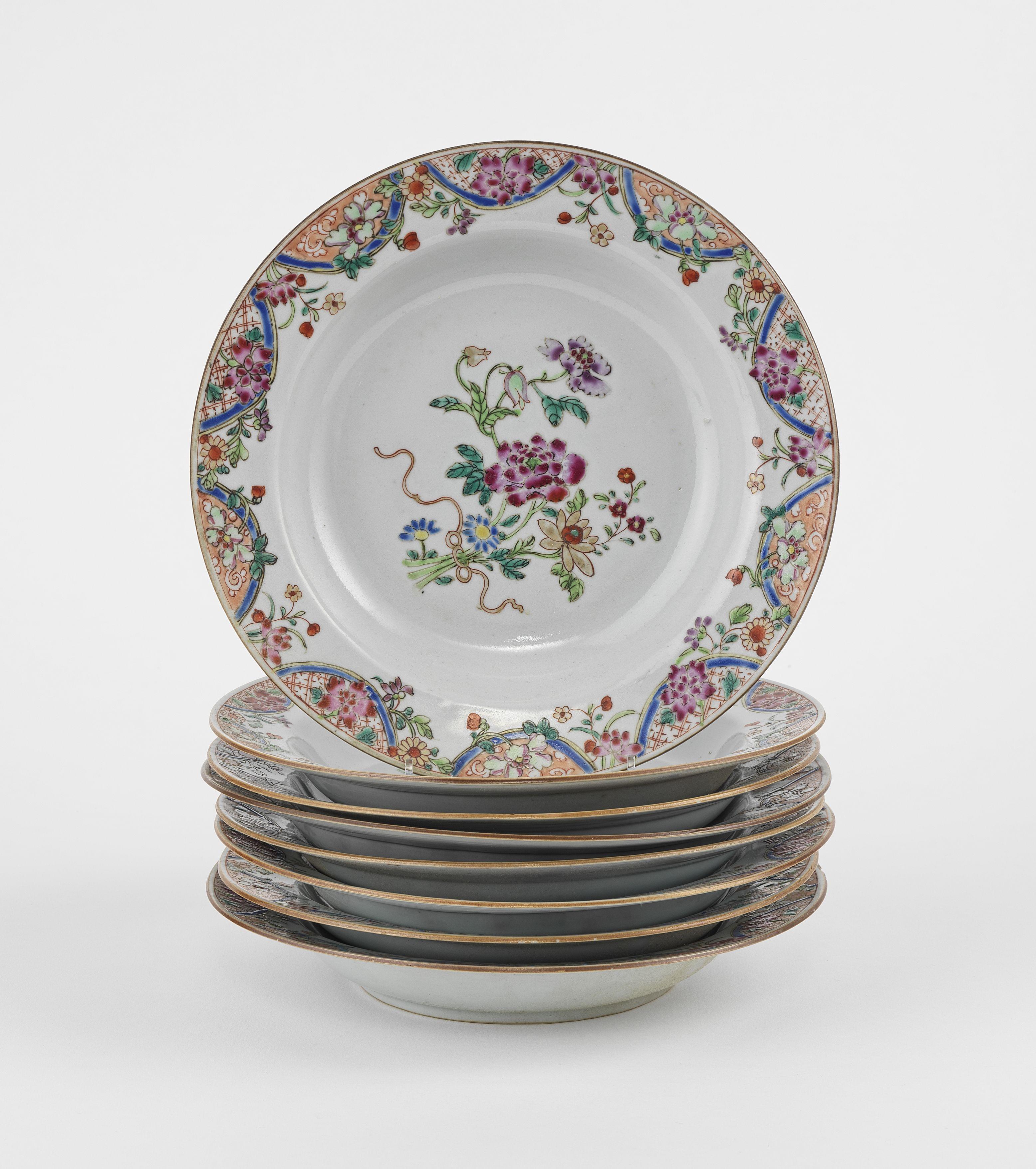 148. Paire d'assiettes de présentation à bordure ajourée en treillis...