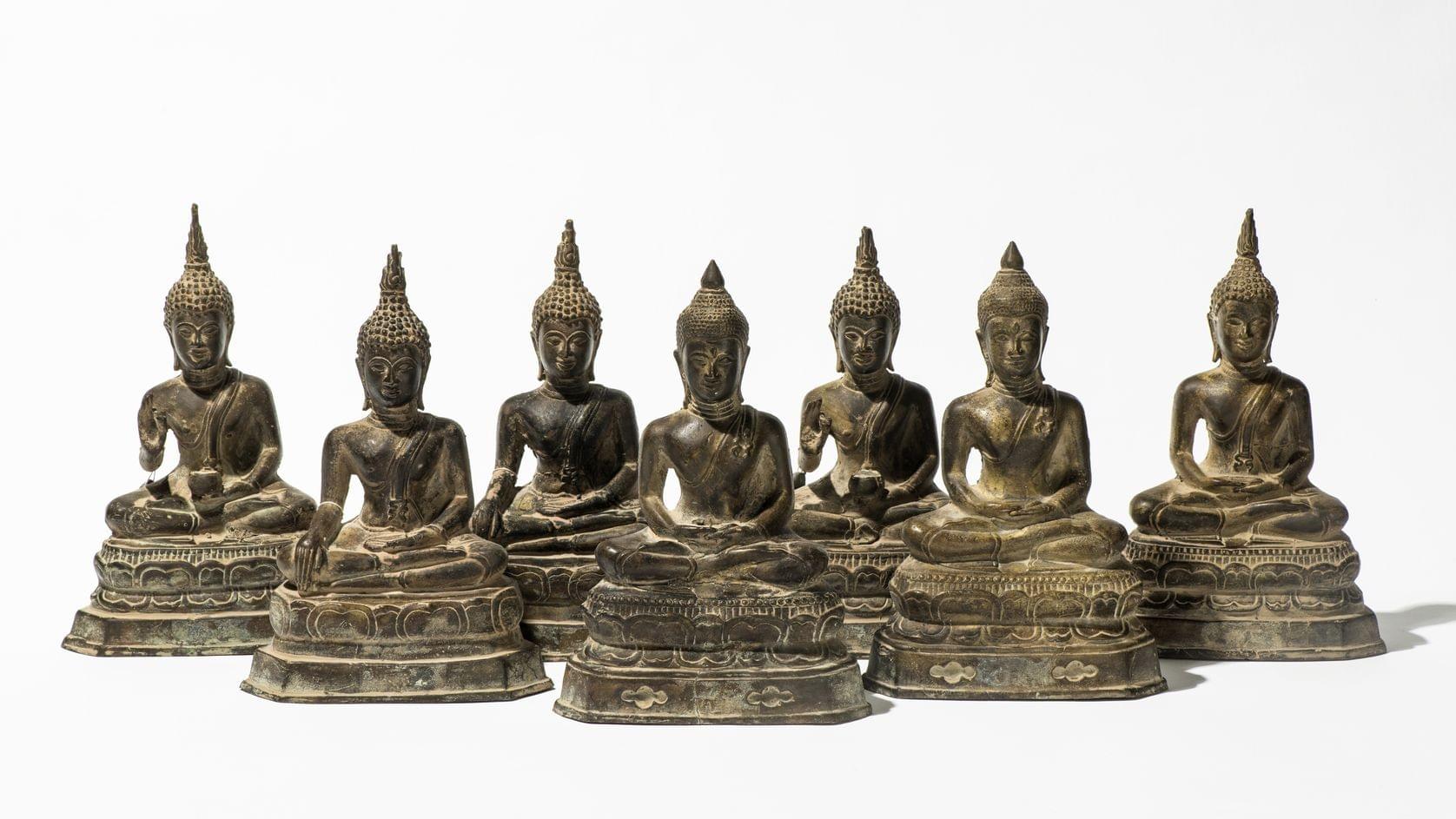 686. Suite de sept Bouddhas accroupis, Thaïlande, probablement XVI-XVIIe s