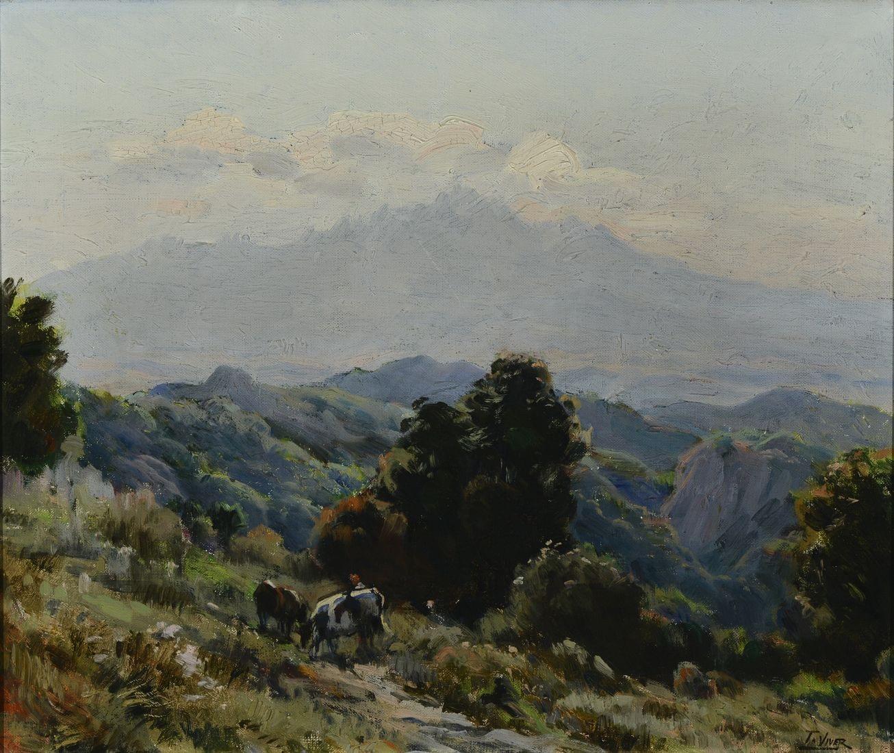 Paysage montagneux avec des vaches, huile sur toile, signée, 45x55 cm