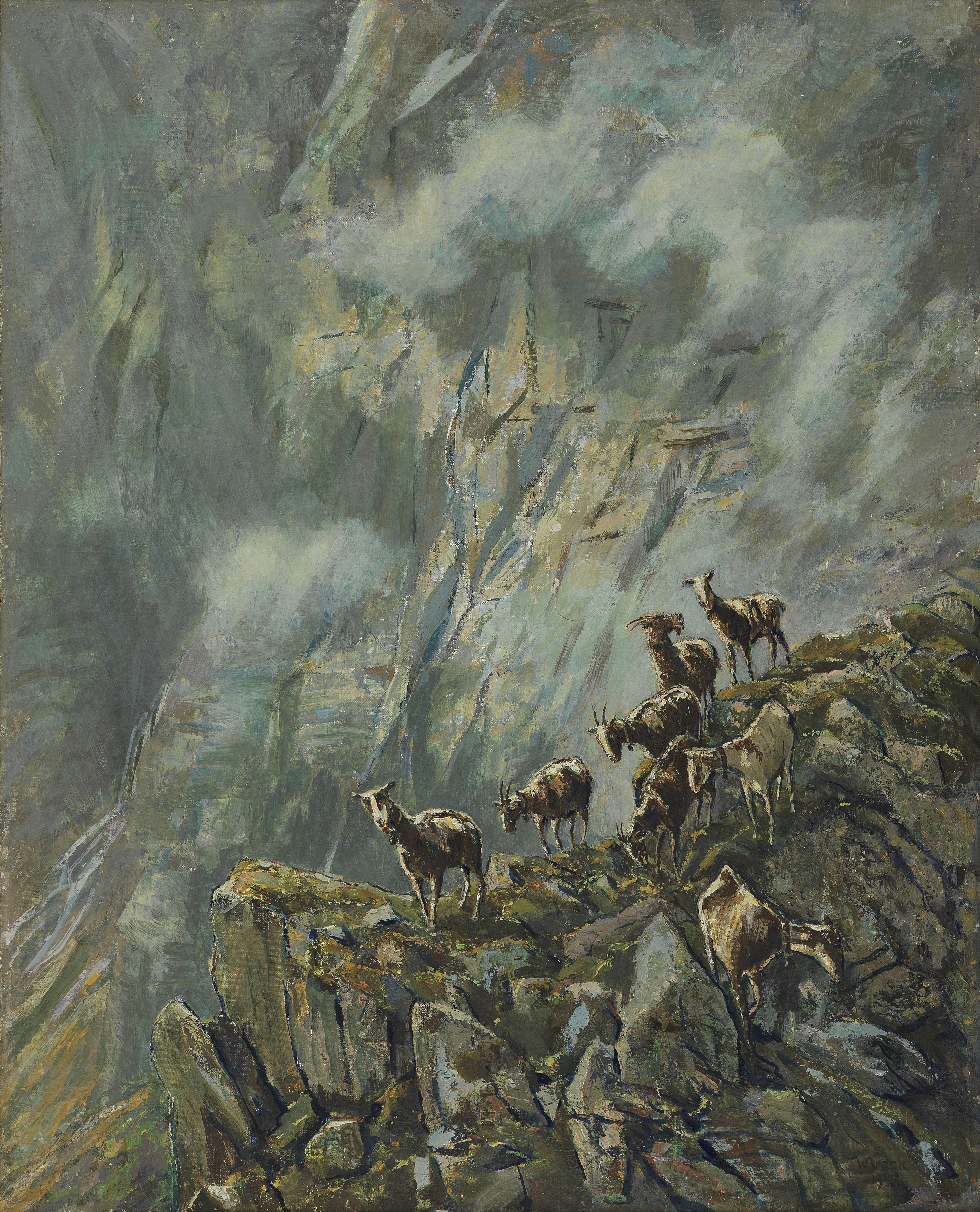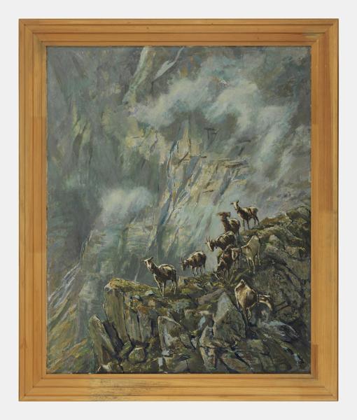 Chaloupe à la mer agitée, huile sur carton, 19x30 cm