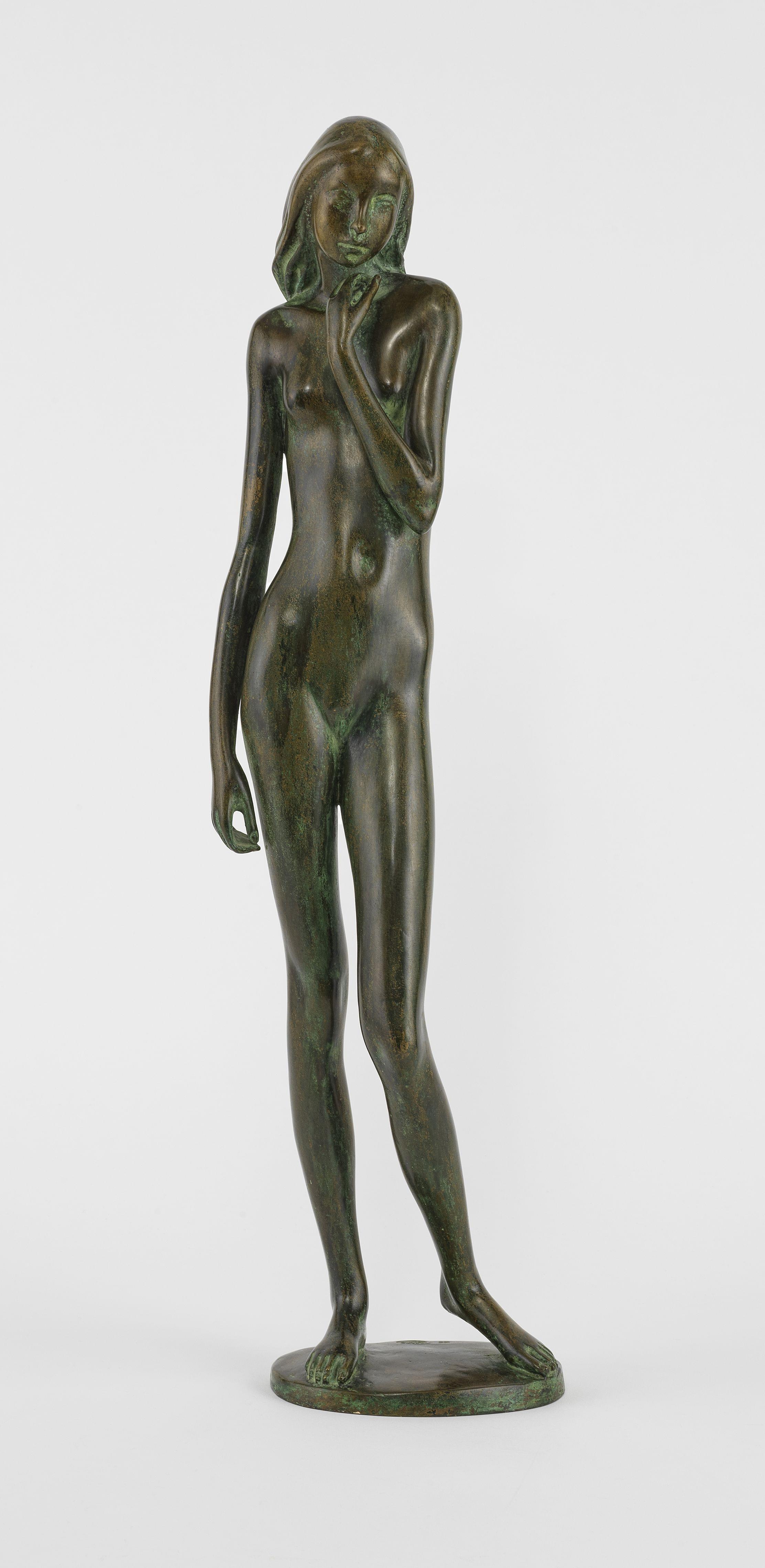 Nu féminin debout, bronze à patine verte, monogrammé et cachet du fondeur F. Amici, H 55 cm