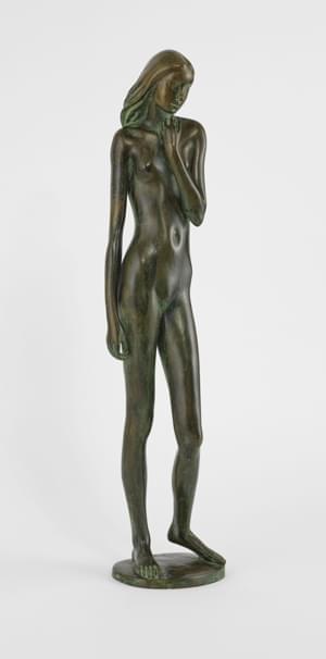 Jeune fille agenouillée, bronze à patine verte, non signé, H 24...