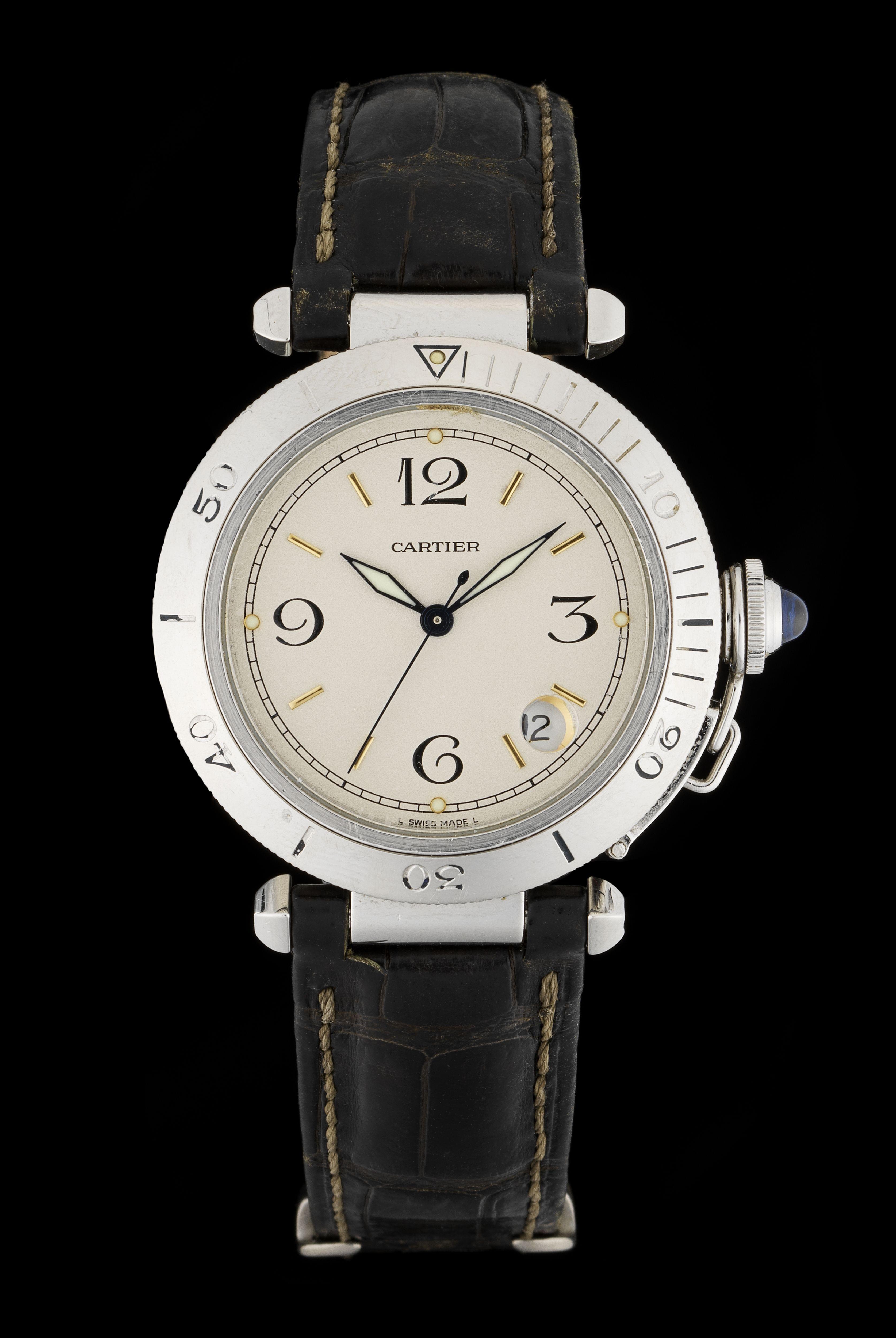 Cadran gris, aiguilles et index bâtons noirs, or gris 750, L env...
