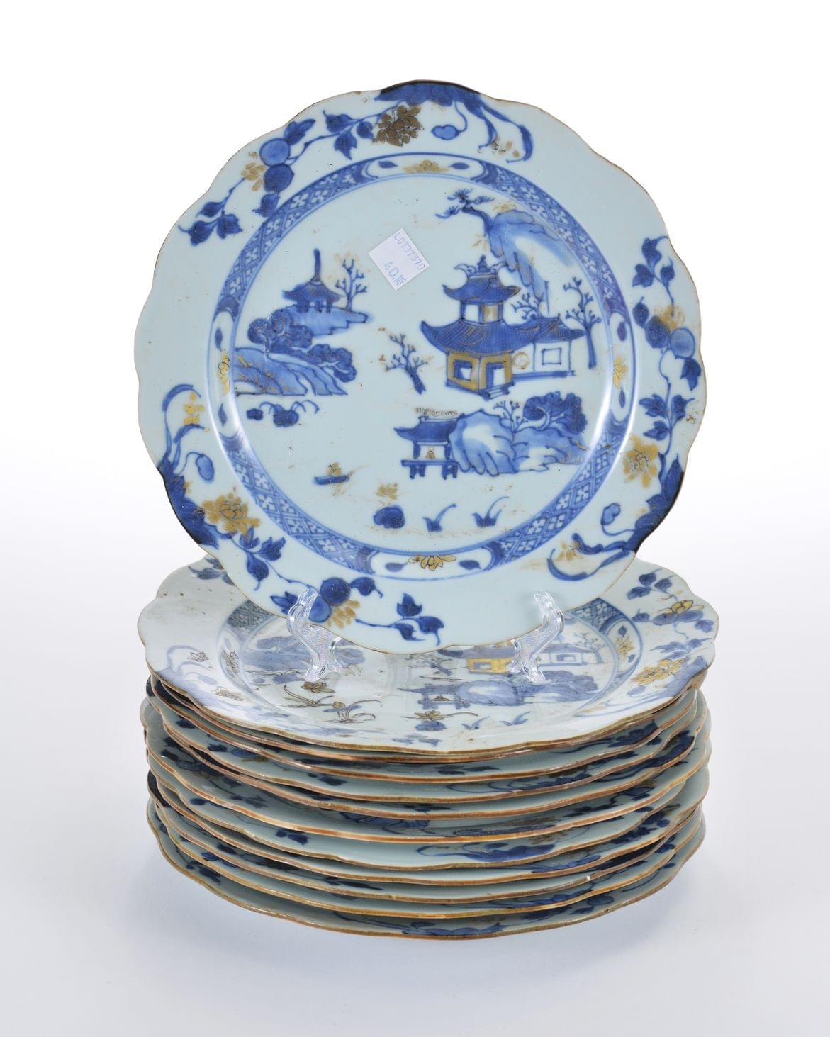 568. 12 assiettes à bordure mouvementée "Nanking Cargo"