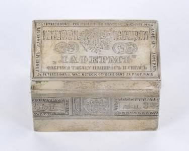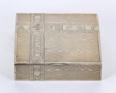 149. Boîte à cigares en trompe-l'œil de ruban et inscriptions en cyri...