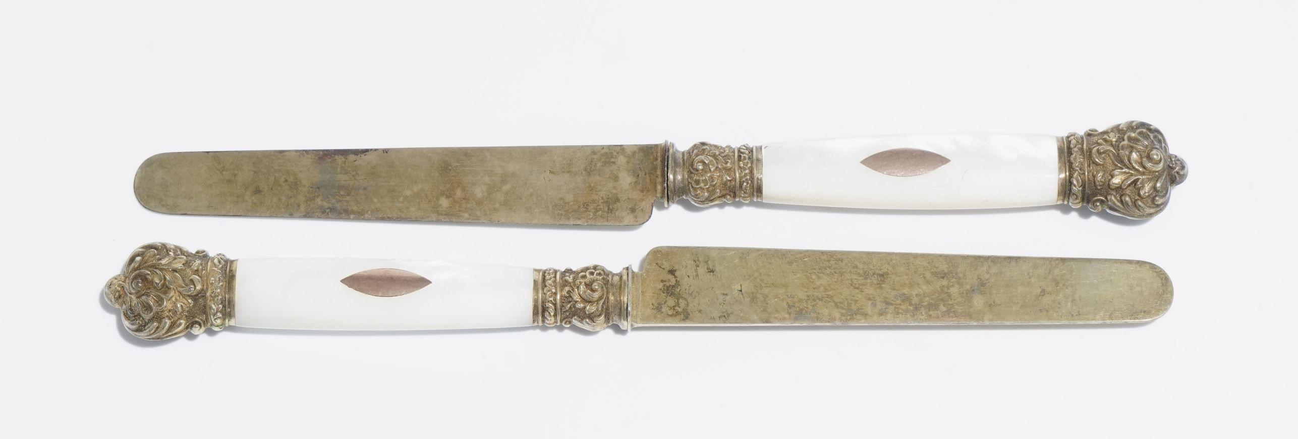 697. Collier à motif de fleurs en nacre ou ajourées, une sertie d'un...