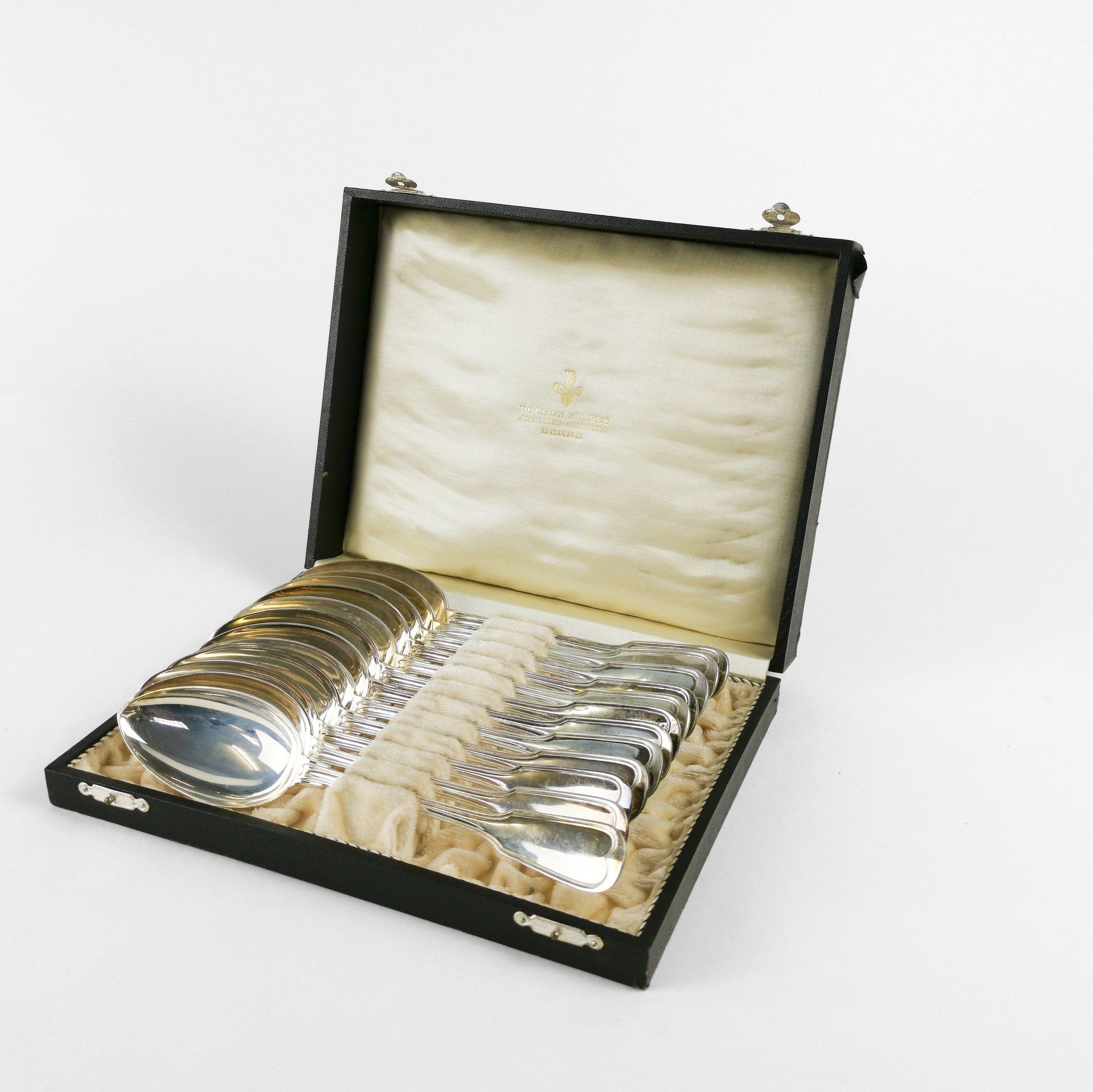 4670. 12 cuillères à soupe à motif filet