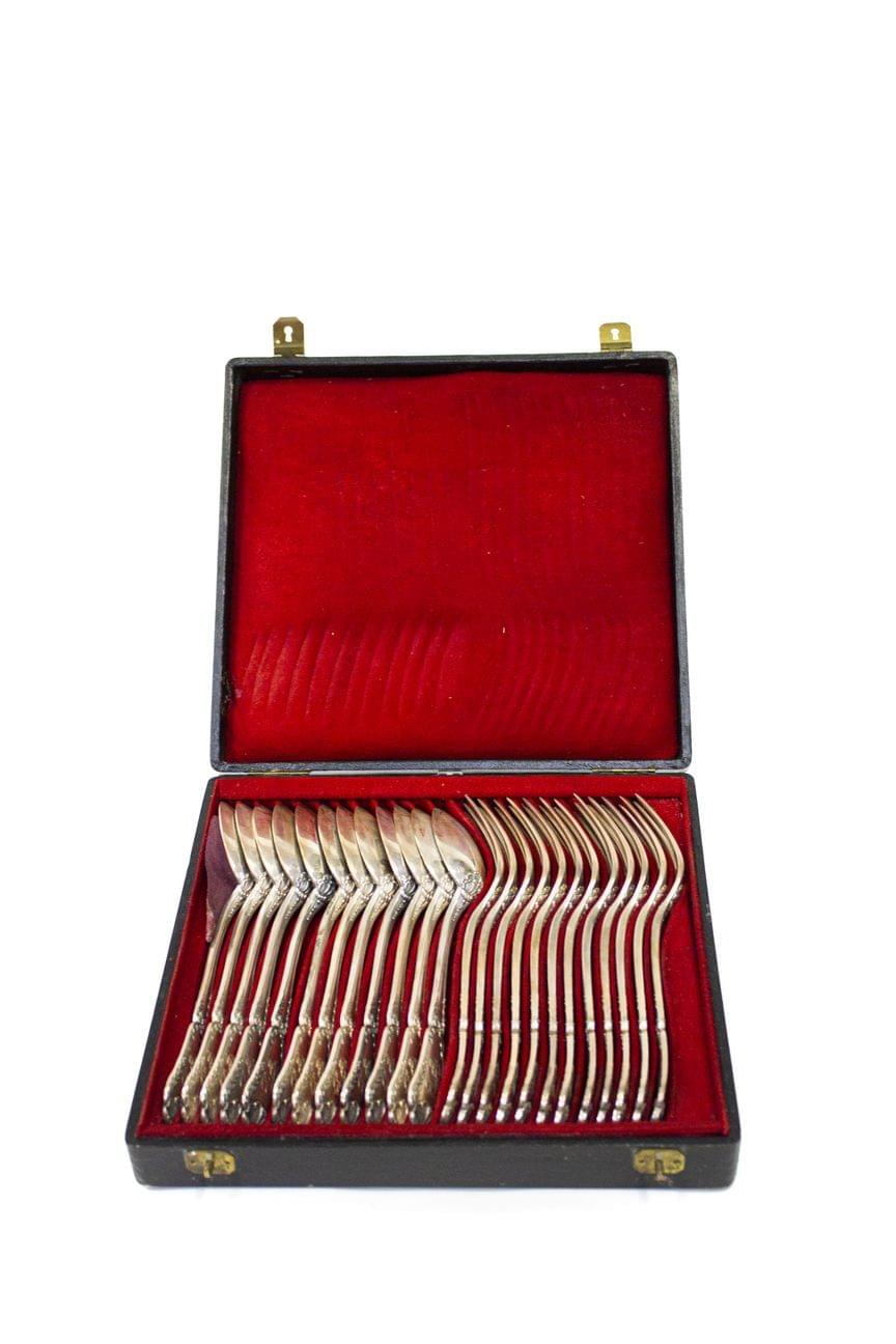 France, argent et ivoire, comprenant: 12 fourchettes, 12 cuillèr...