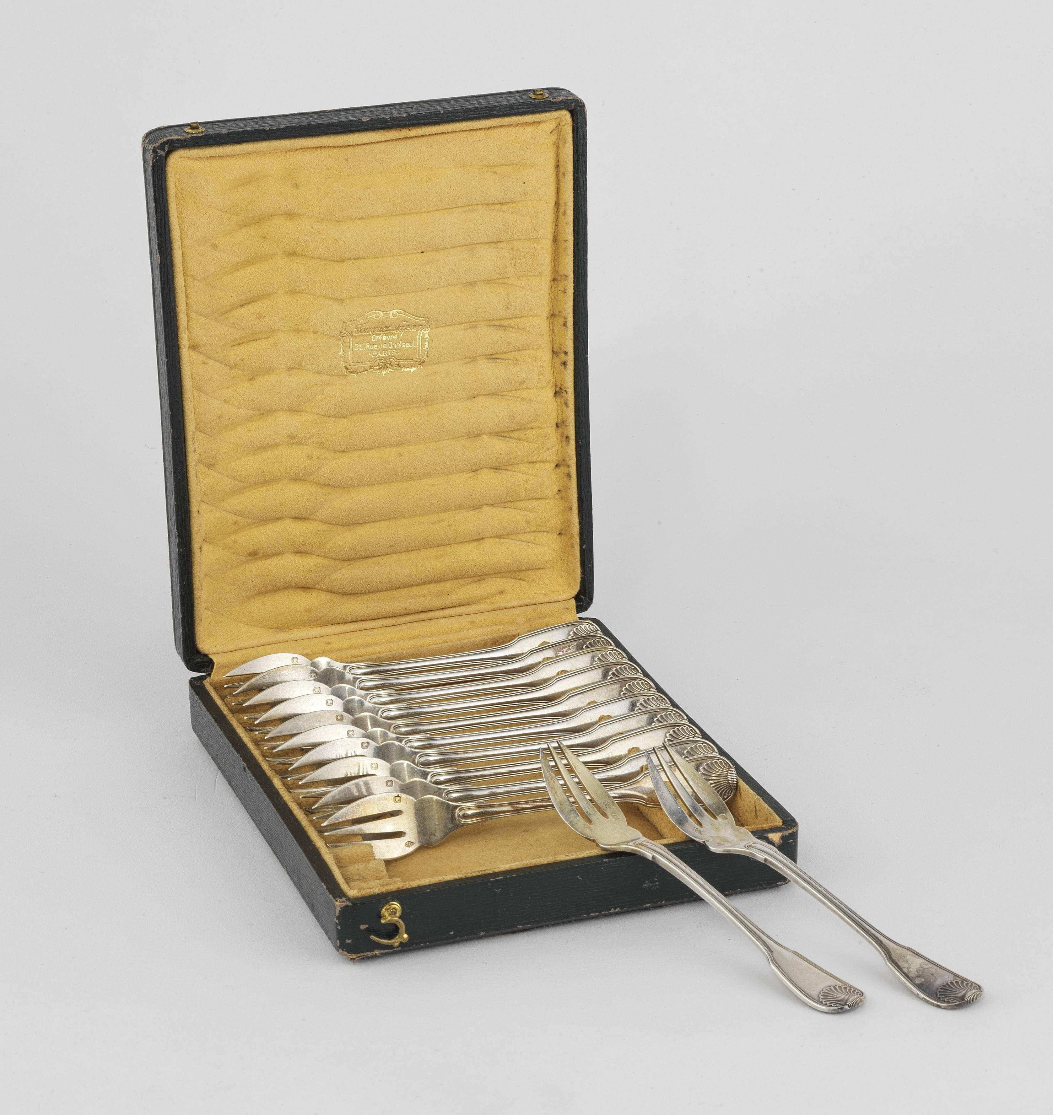 Christofle, métal argenté, comprenant: 12 fourchettes, 12 cuillè...