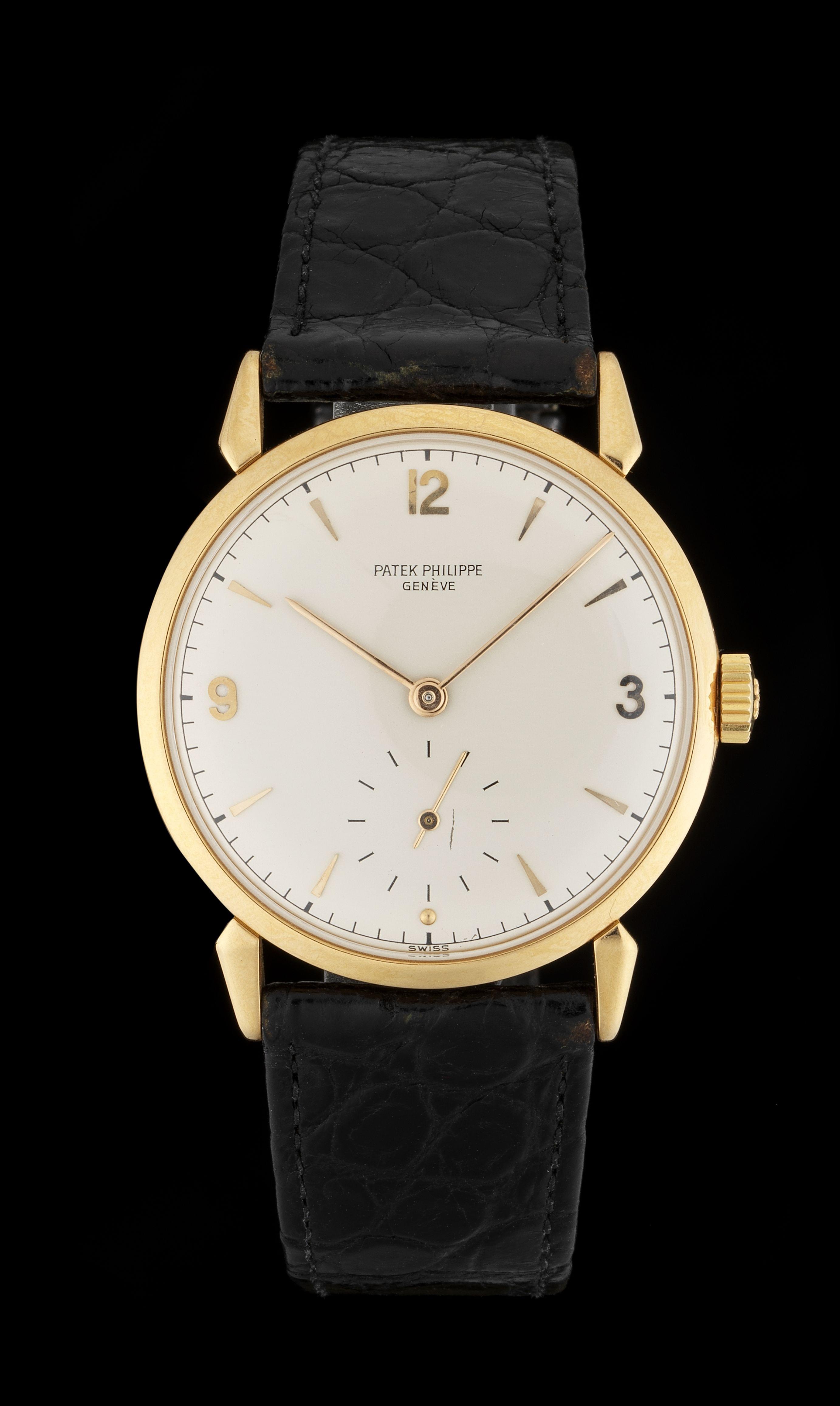 Cadran gris, aiguilles, index bâtons et chiffres arabes dorés, secondes à 6h, réf. 1578, or rose 750, D 35 mm, poids brut 41 g