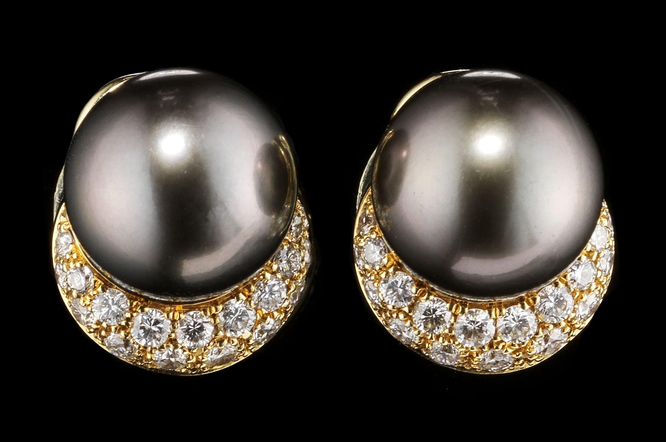 308. Boucles d'oreilles serties de perles de Tahiti (D env. 12 mm)
