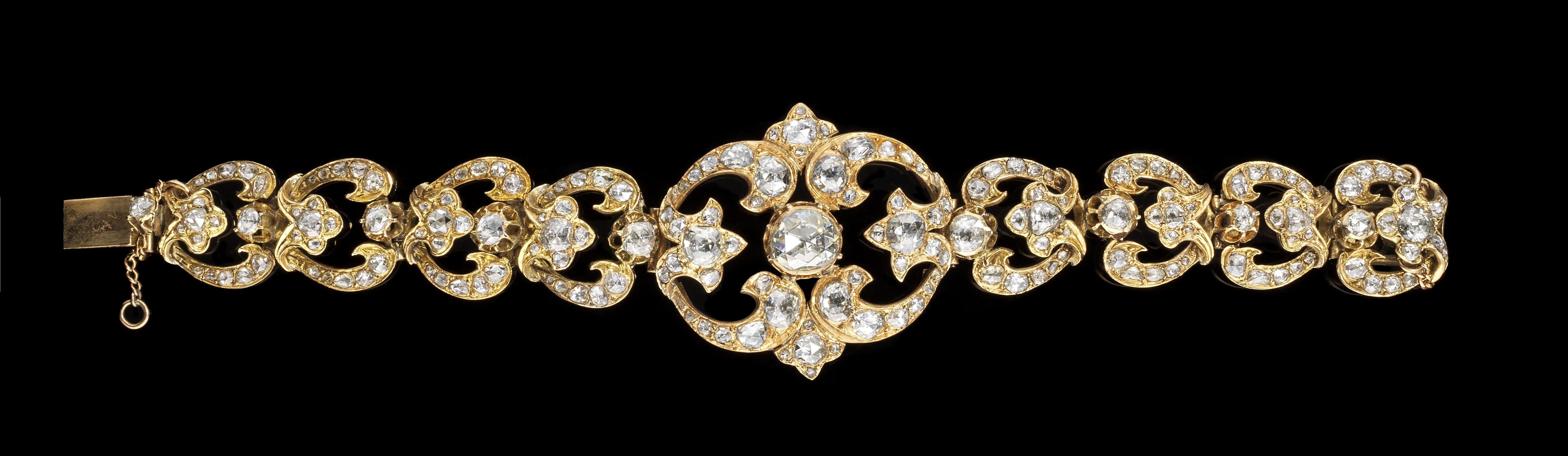 314. Bracelet composé de motifs ajourés entièrement pavés de diamants taille rose