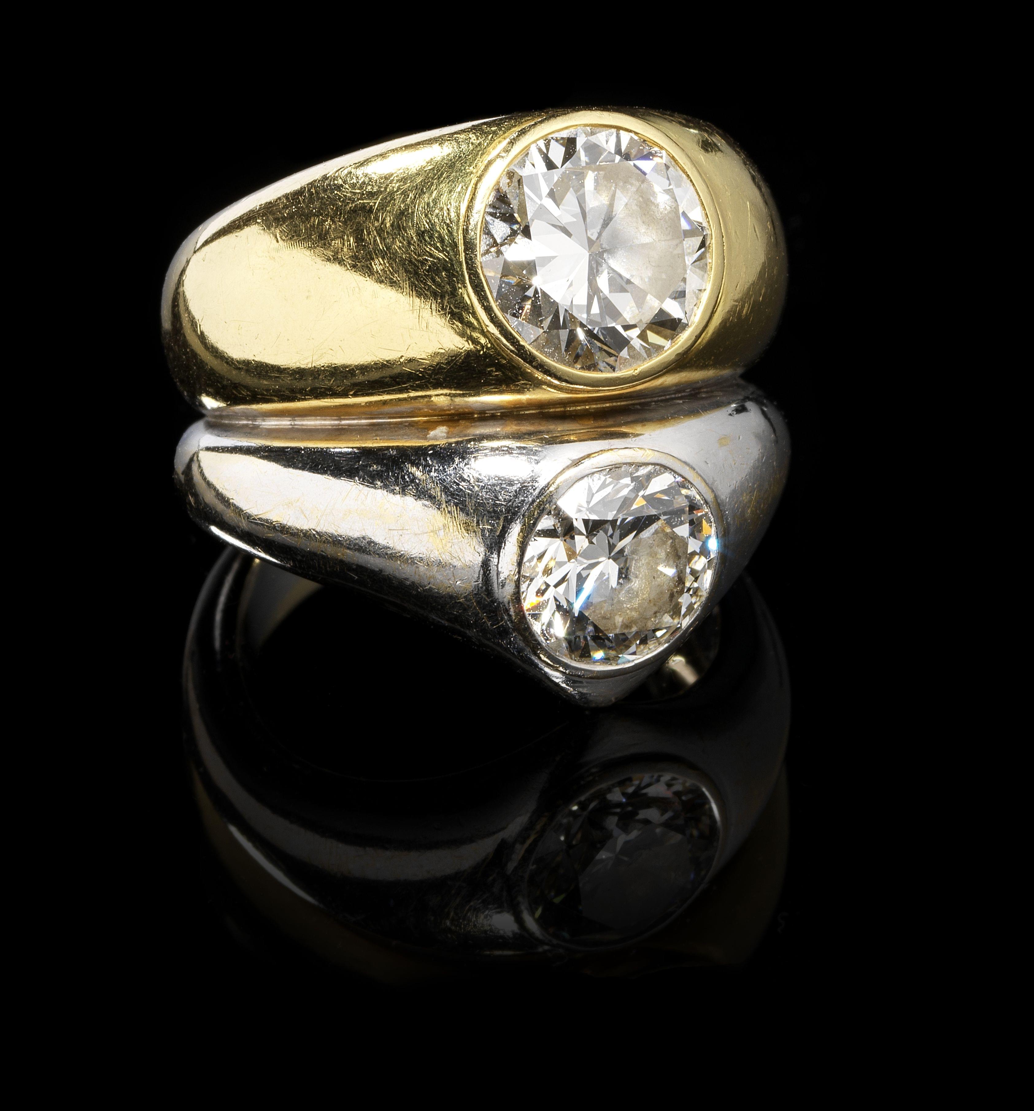 318. Bague composée de deux anneaux deux ors sertis chacun d'un diamant (env. 2,6 ct et 1,7 ct)