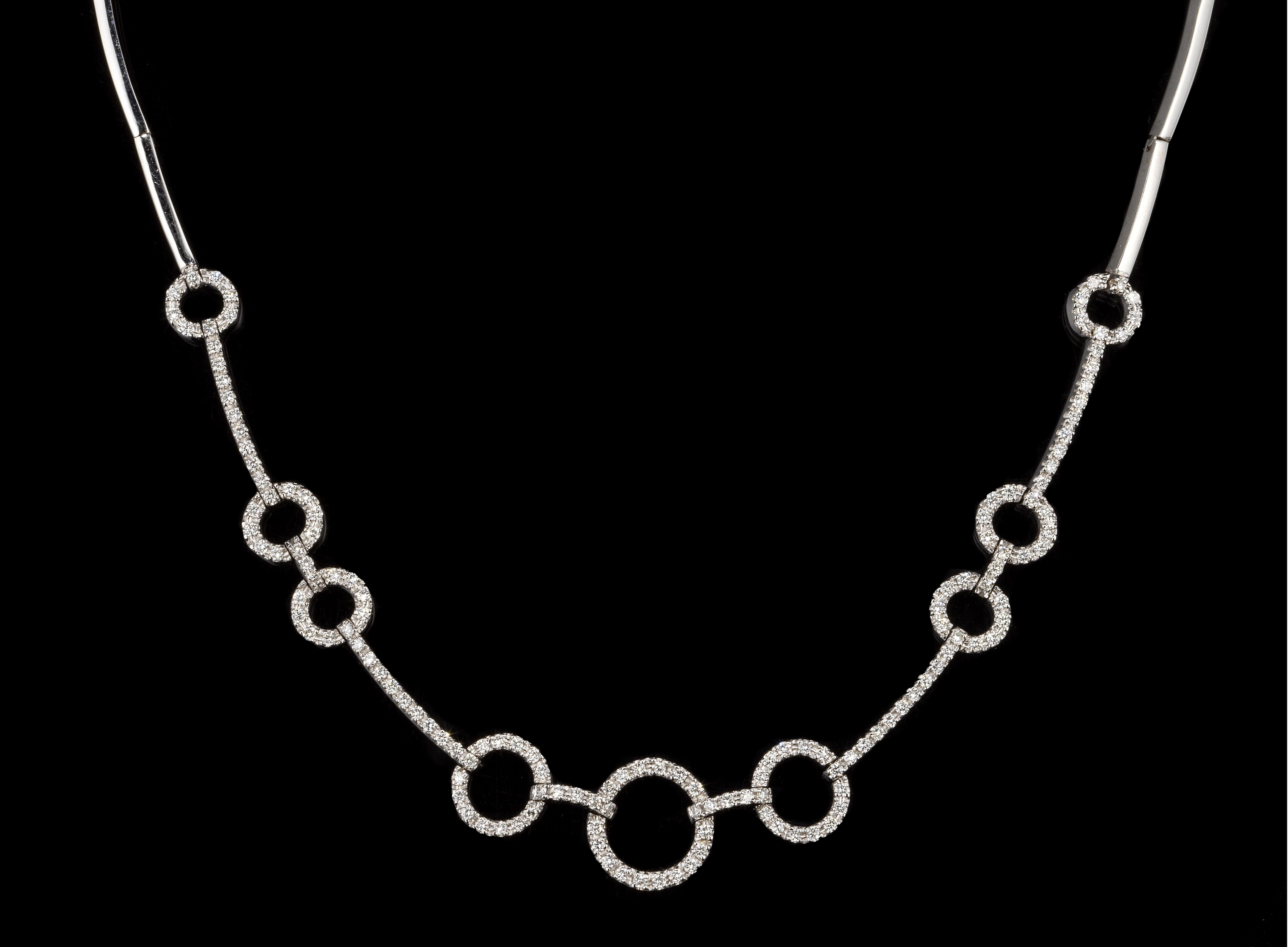 323. Collier tour de cou design centré de motifs ronds ajourés sertis de diamants