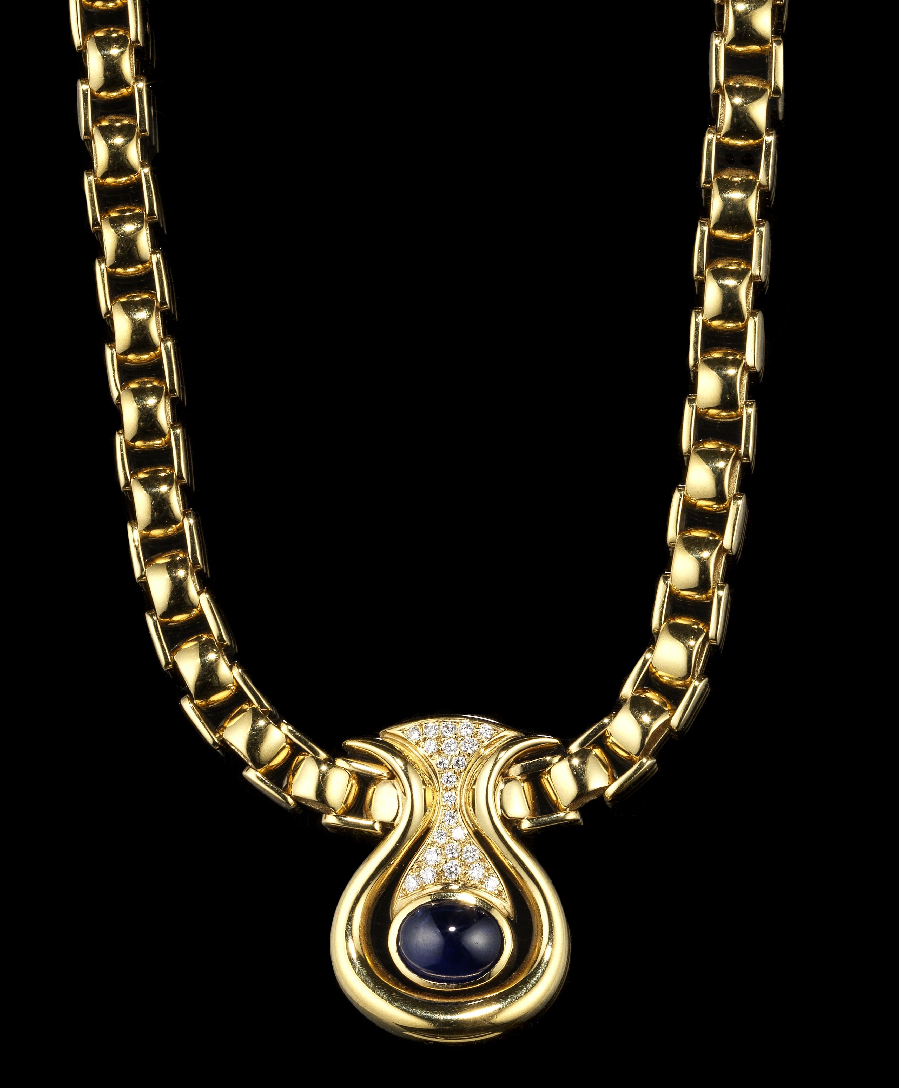 Rehaussé d'un motif pavé de diamants (env. 1 ct), or 750, penden...