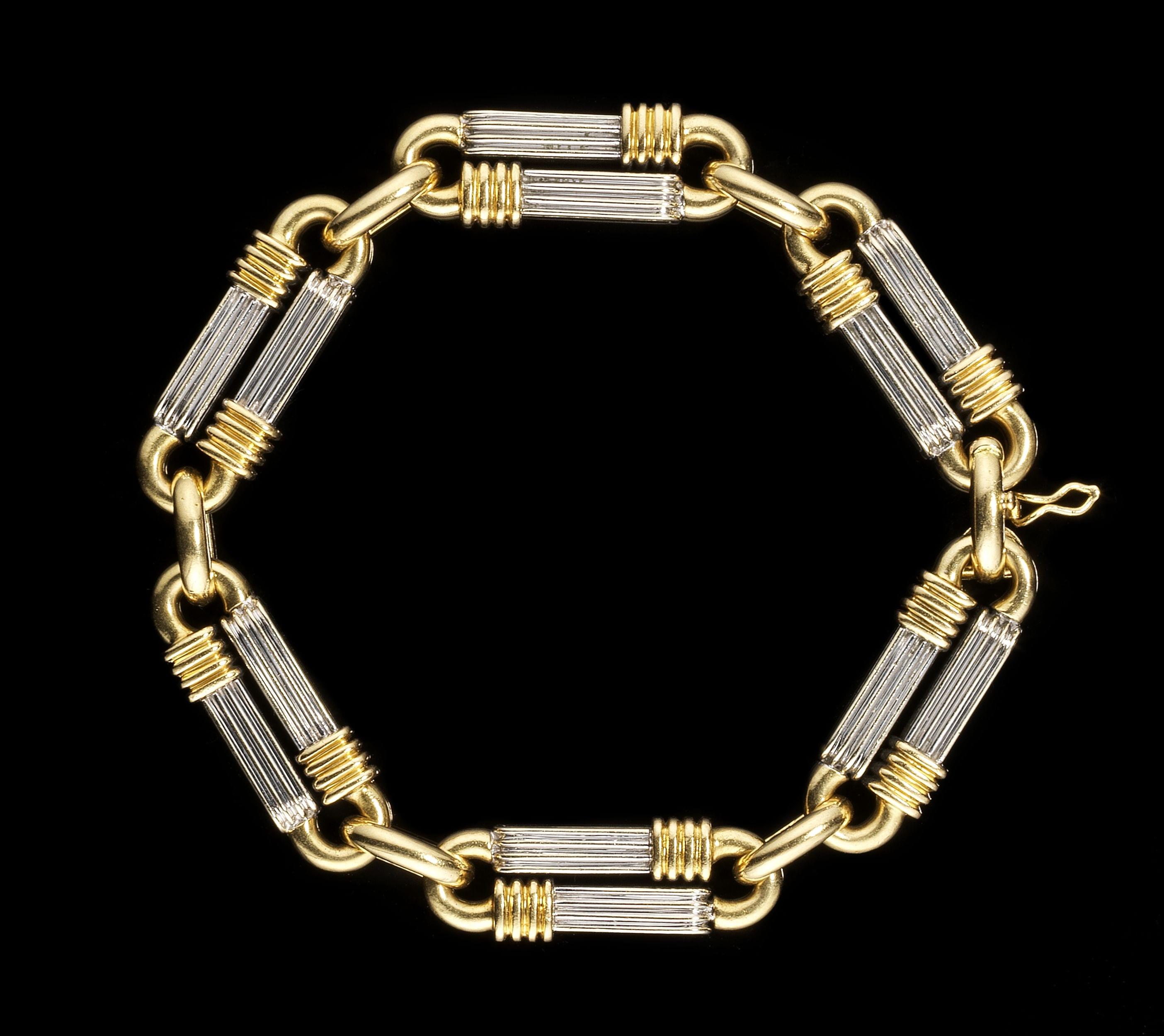 Cadran gris, aiguilles et index bâtons noirs, or gris 750, L env...
