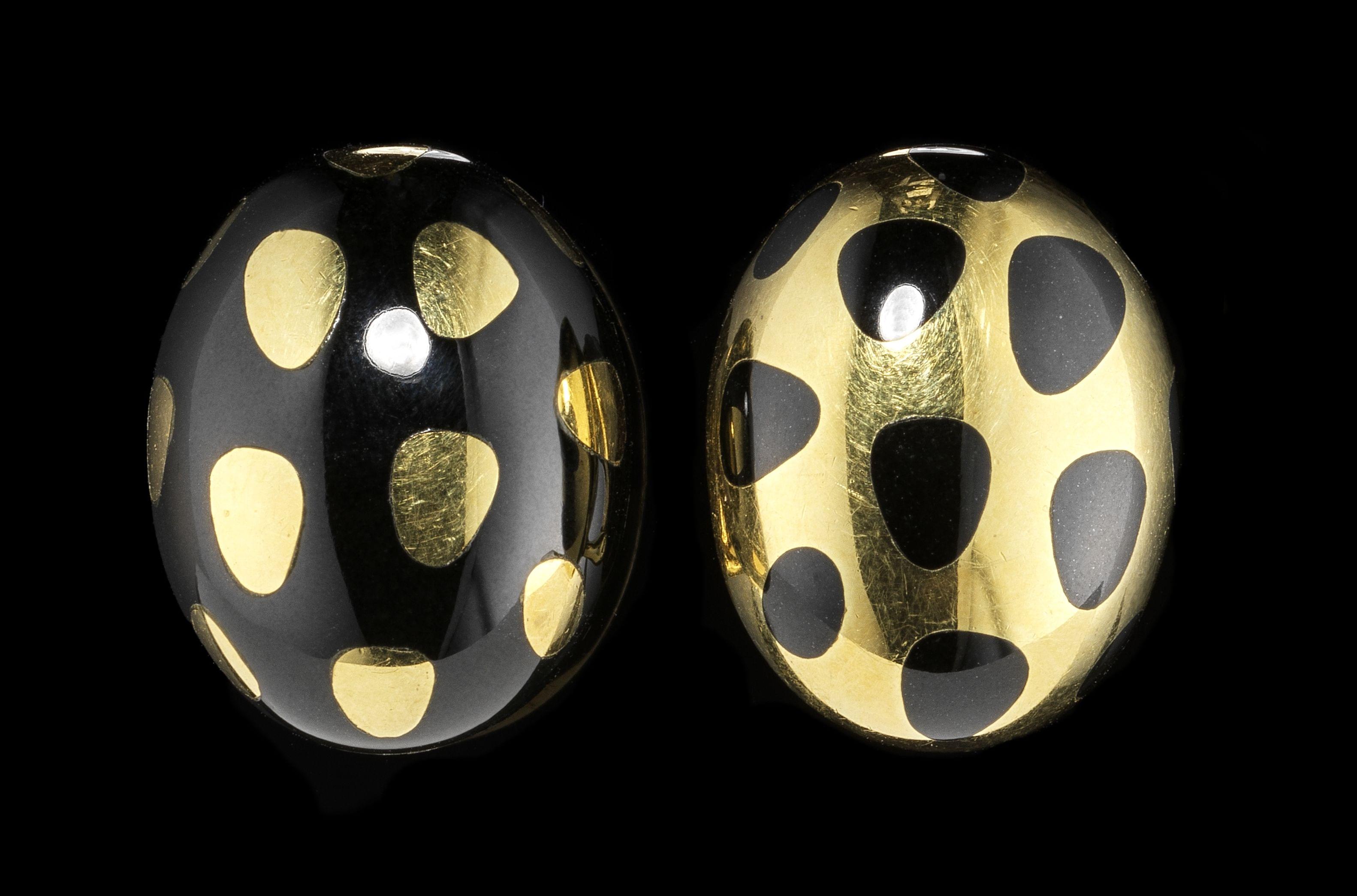 Rehaussées de pavages de diamants, or 750, H env. 1,5 cm, 18 g