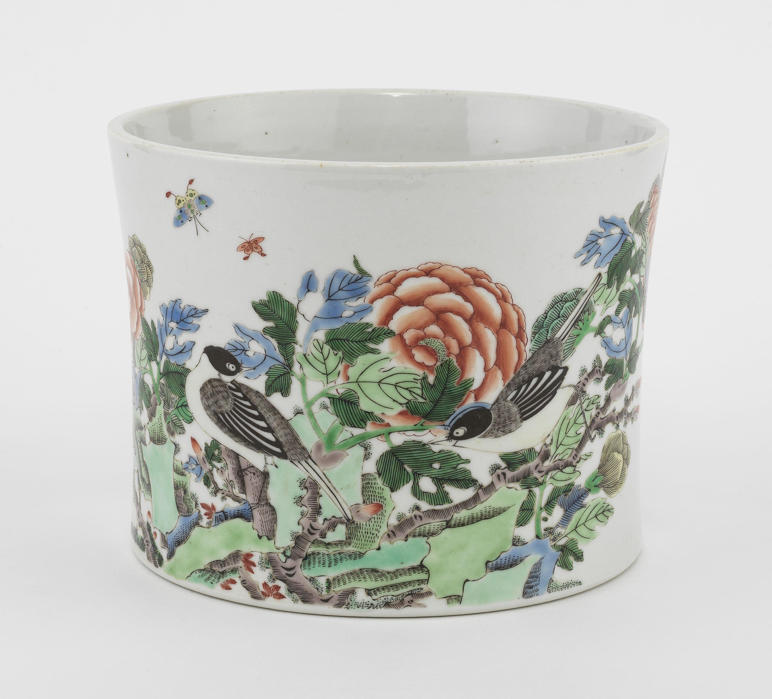 Porcelaine émaillée polychrome à décor d'oiseaux et fleurs, H 15,5 cm
