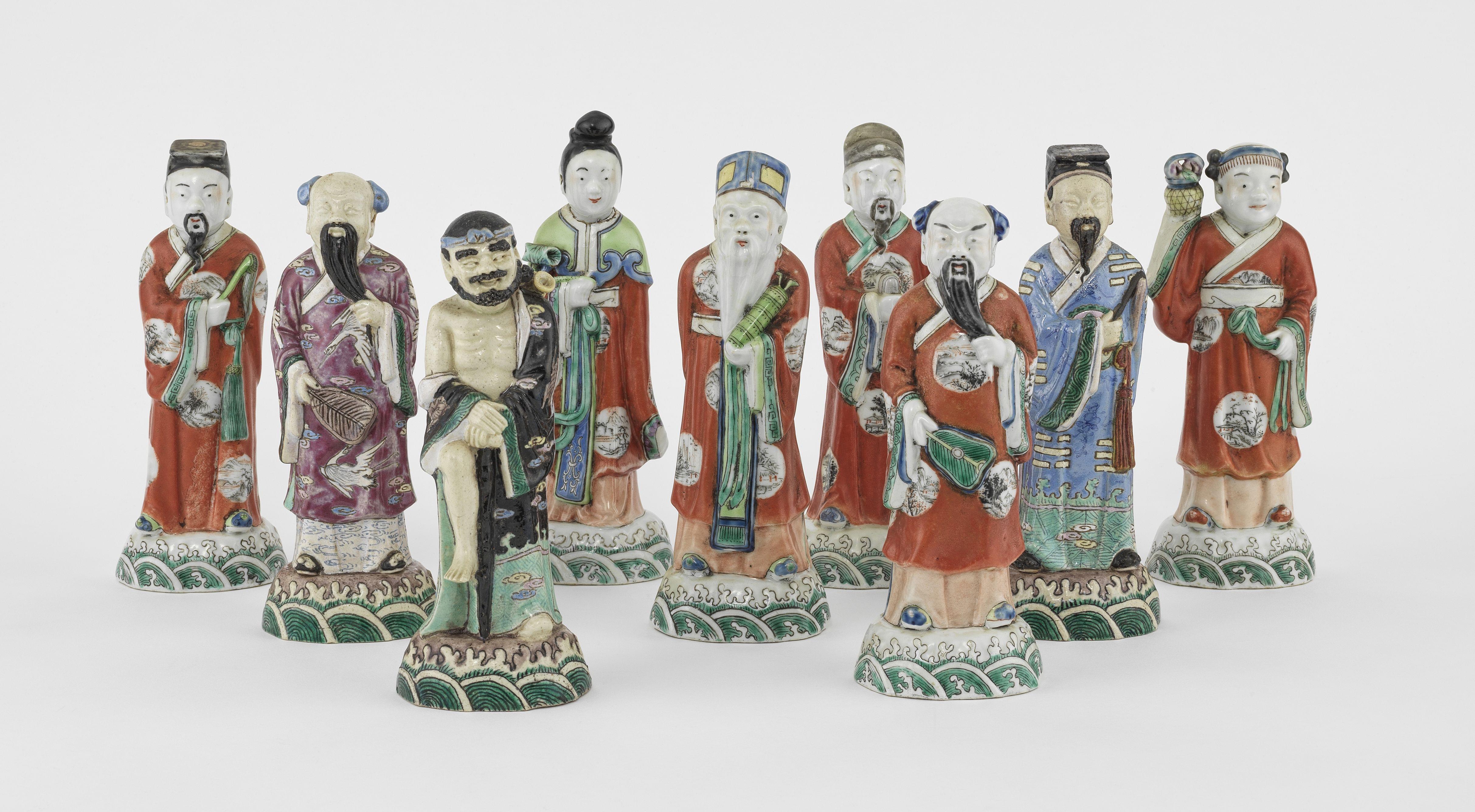 263. Suite de neuf statuettes figurant des immortels, Chine, dynastie Qing (1644-1912)