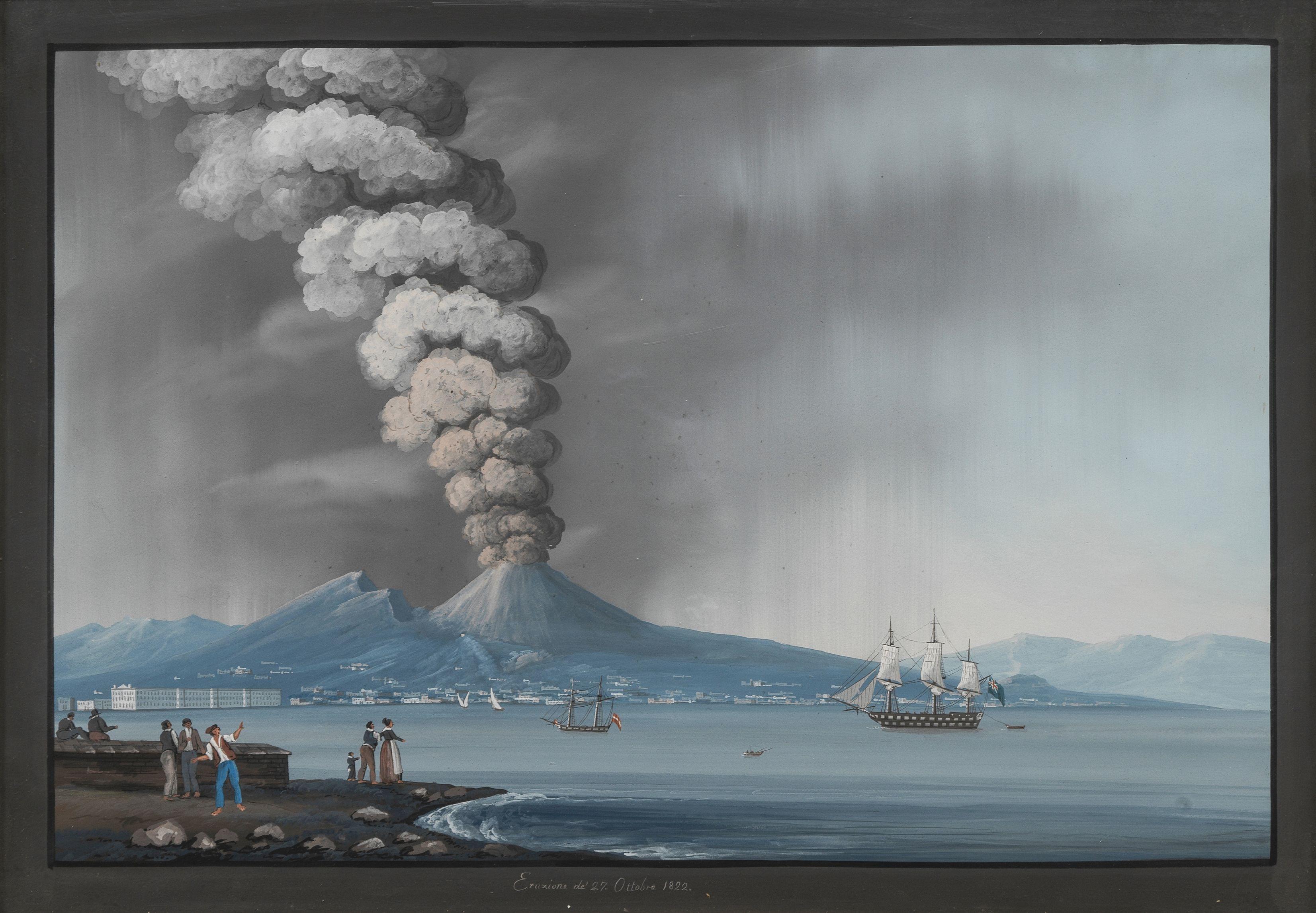 Eruption de 1832, gouache sur papier, 40x62 cm