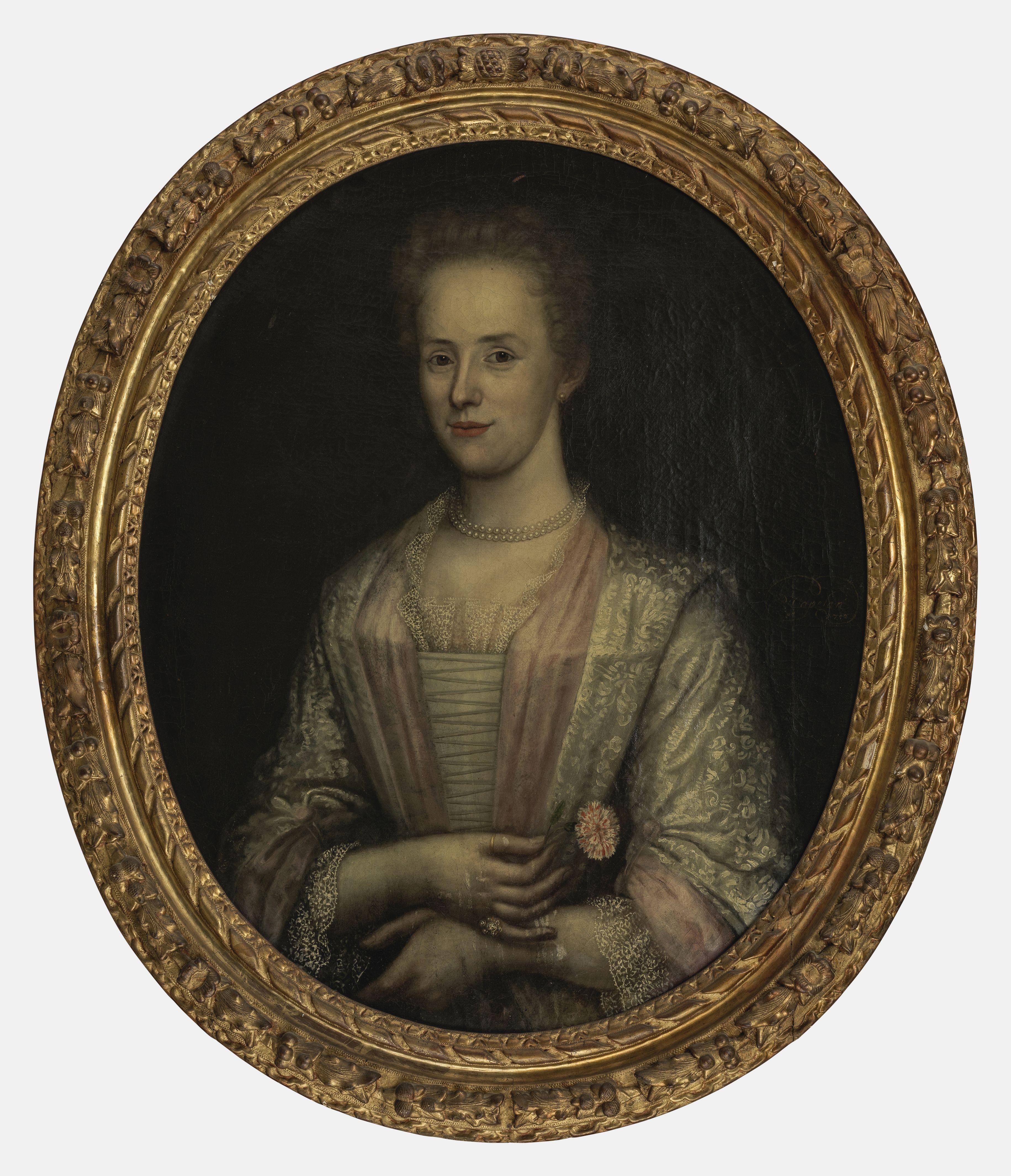 Portrait de Madame la baronne de Vasserot, signée Capelan et datée 1702, huile sur toile, 80x66 cm. Cadre d'époque Louis XIV en bois sculpté et doré.