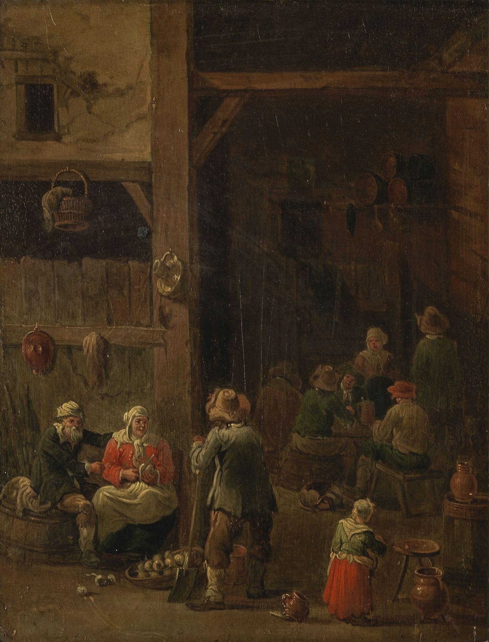 Scène de taverne, huile sur panneau, 30x23 cm.Provenance: collection patricienne genevoise