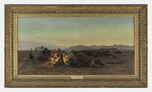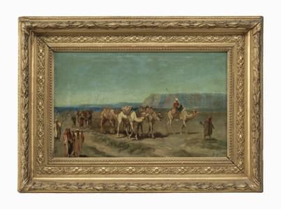 Caravane dans le désert, huile sur toile, monogrammée, 26x38 cm