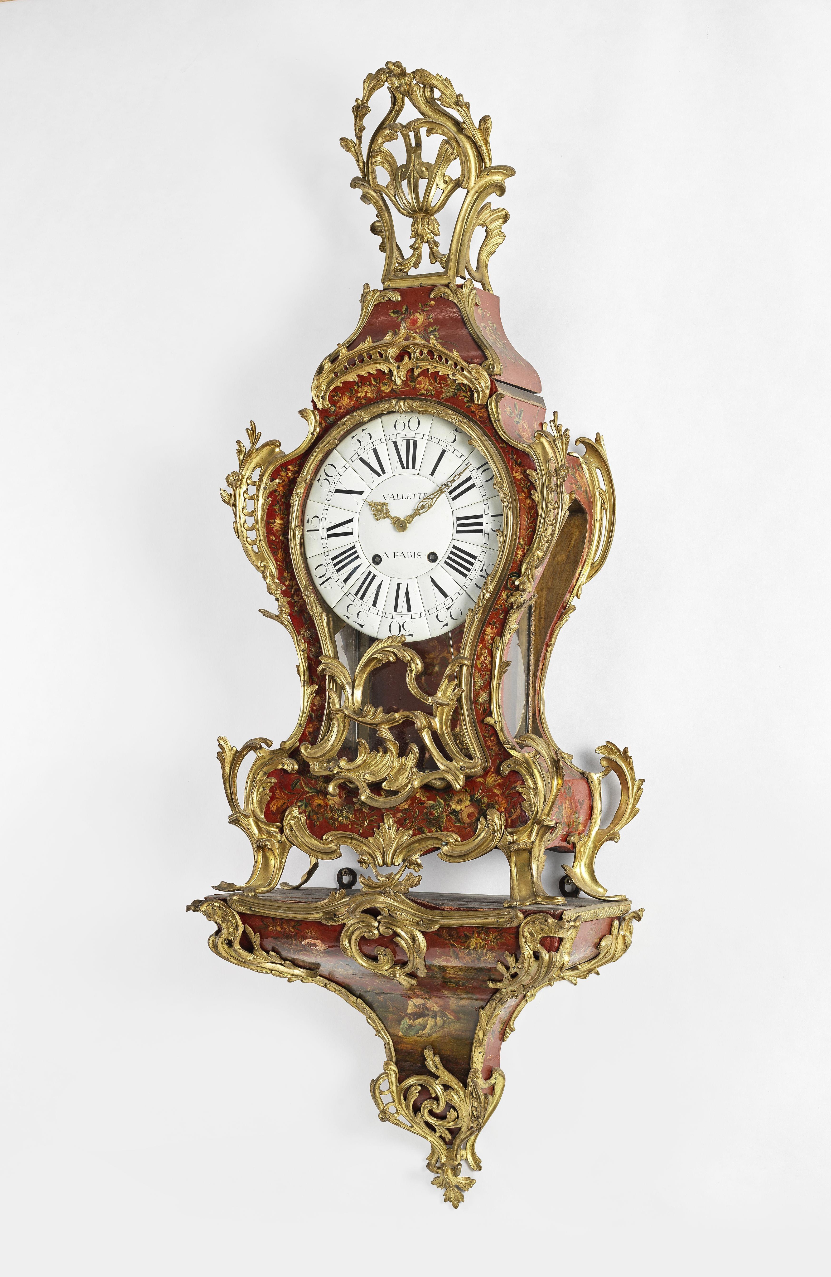 205. Cartel et sa console d'époque Louis XV, cadran signé Vallette à Paris