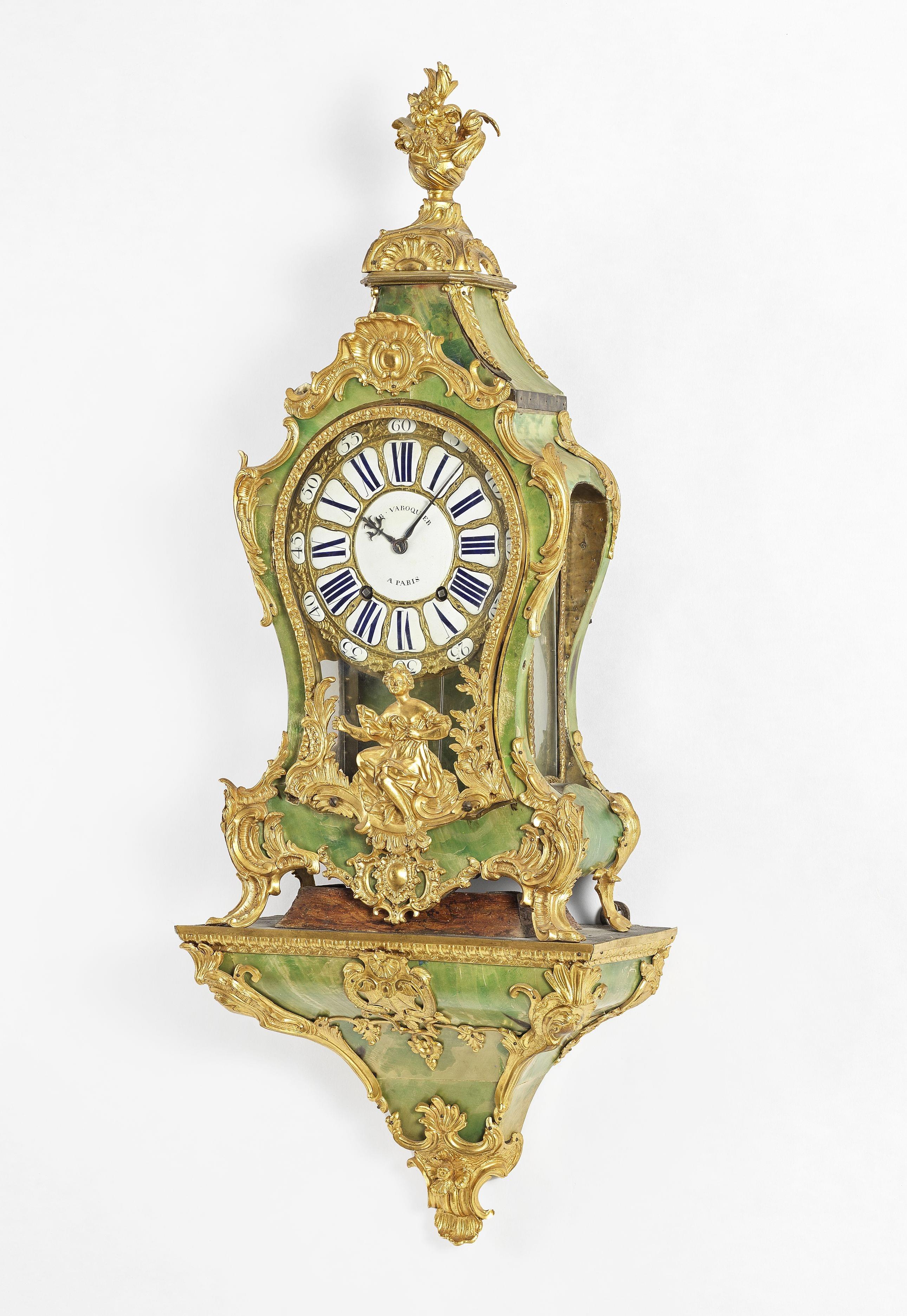 206. Cartel et sa console d'époque Louis XV, cadran et mouvement signé E. Varoquier à Paris