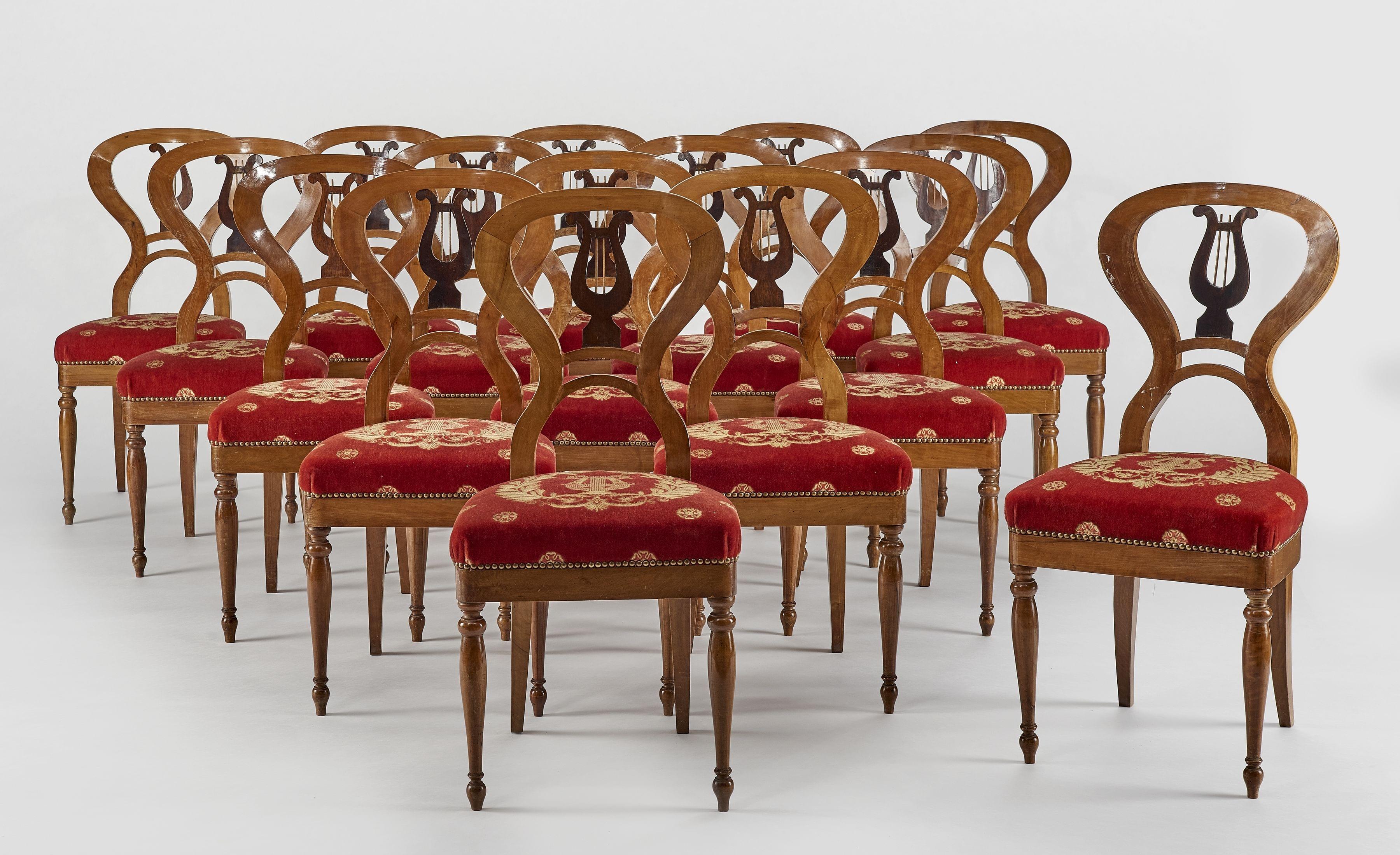 607. 16 chaises à dossier lyre d'époque Biedermeier