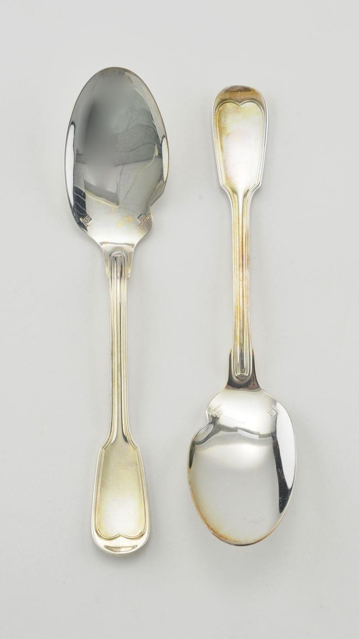 156. Cuillère à sauce à cuilleron ovale et manche sommé d'un cercle b...