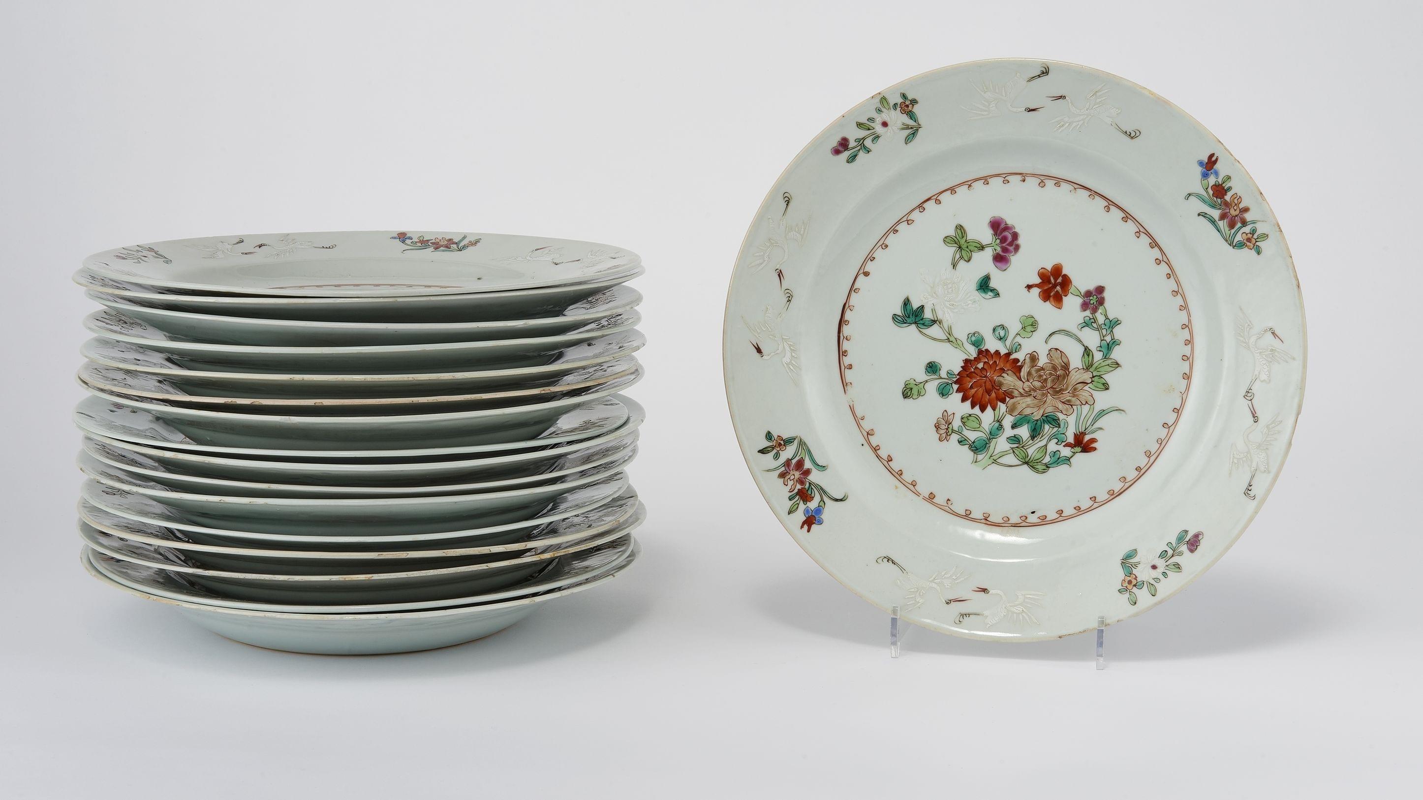 302. 17 assiettes, Chine Compagnie des Indes, XVIIIe s