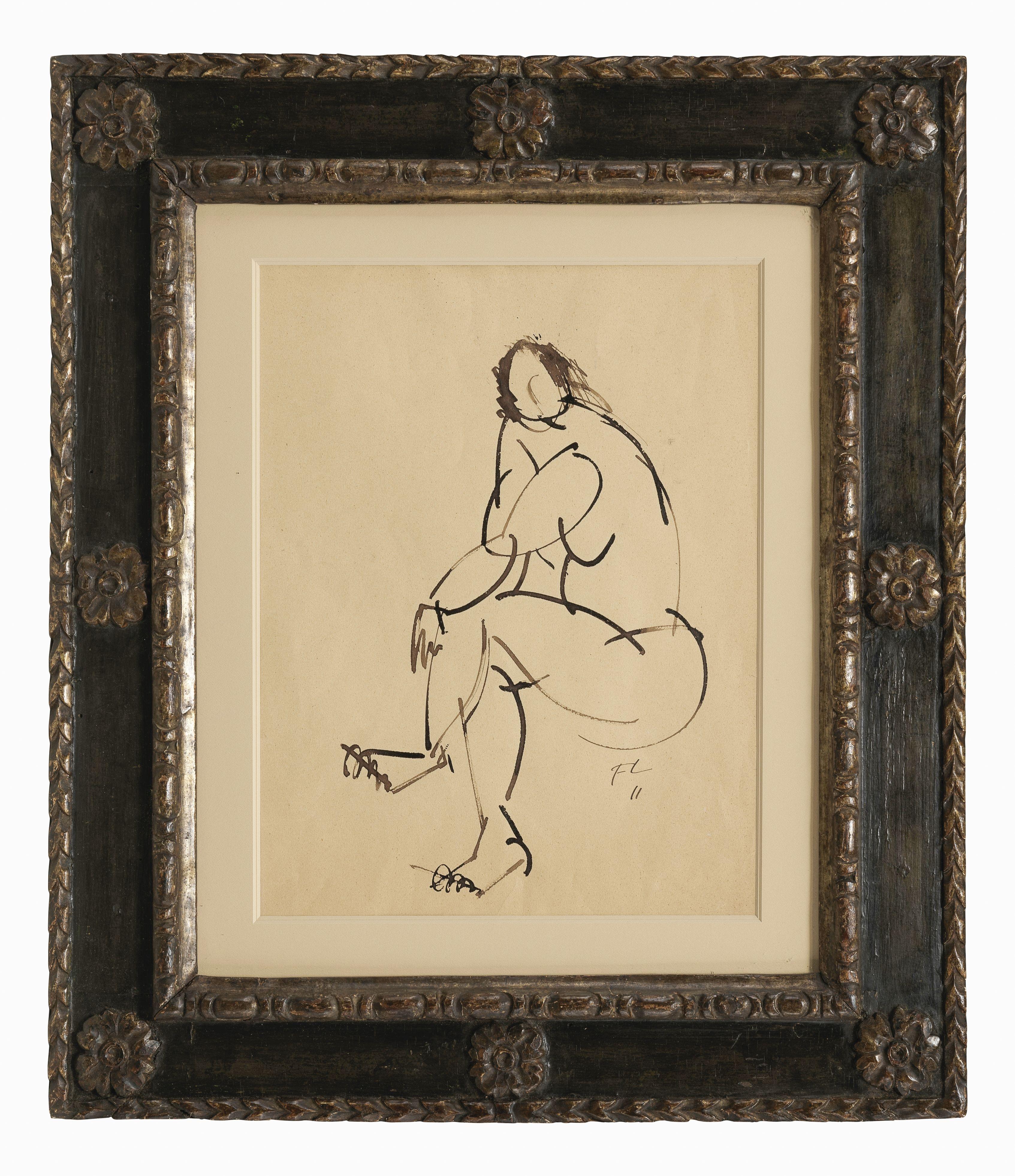 Silhouette, étude de nu, encre, monogrammée, 34x27 cm. Provenance: collection privée genevoise