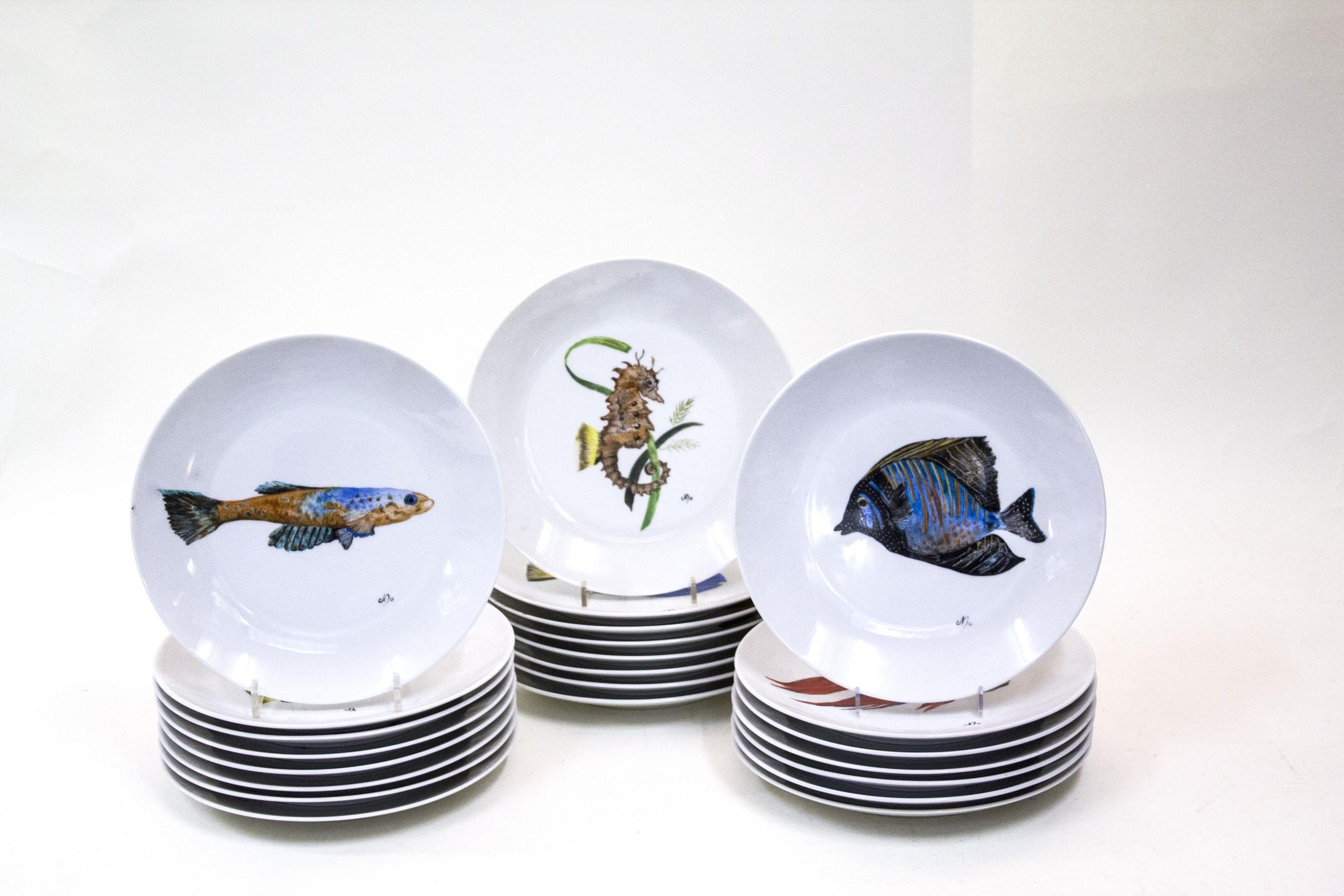3440. 18 assiettes à décor de poissons