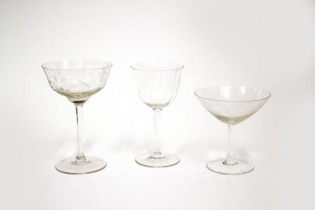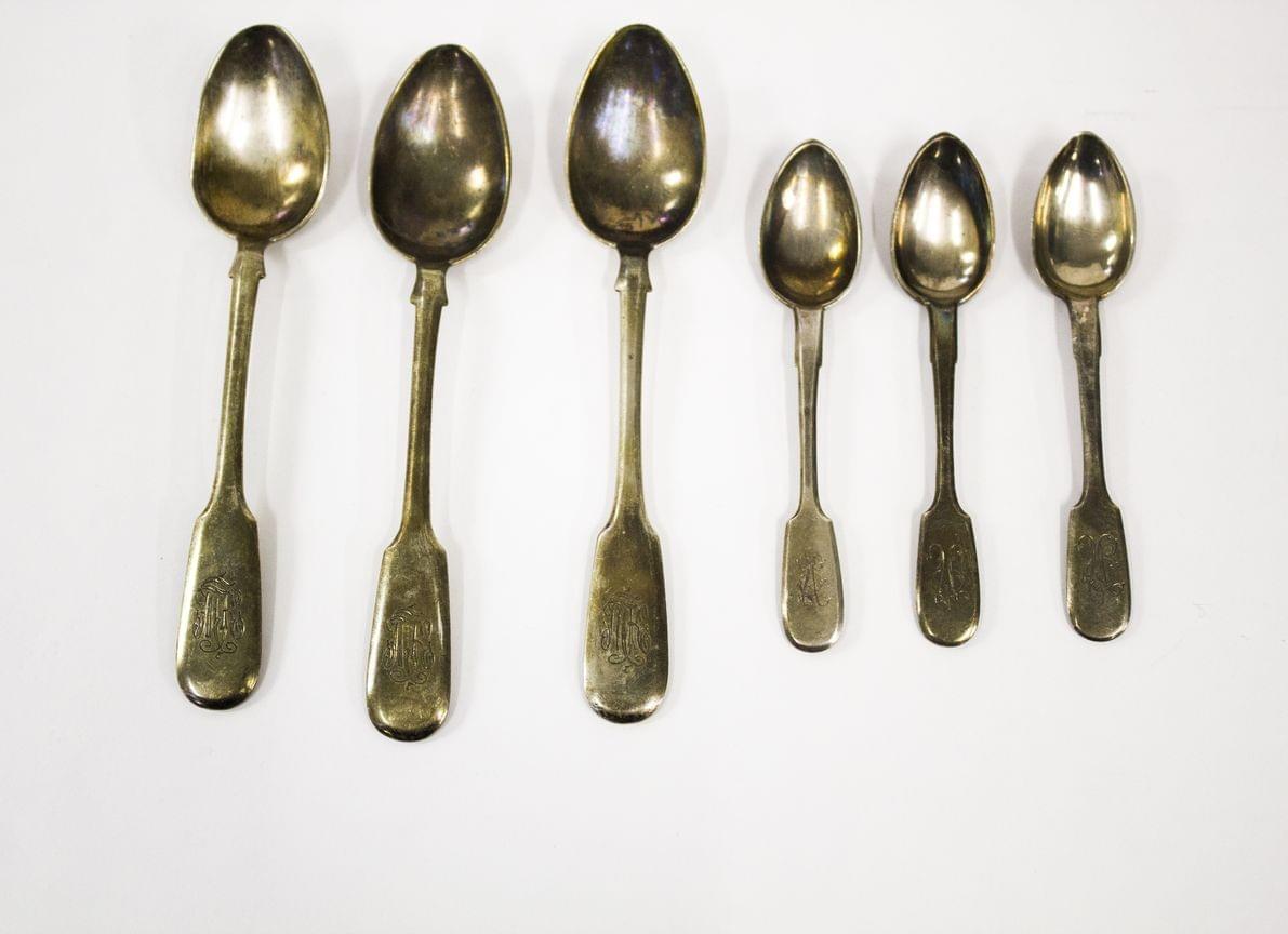 3177. Ensemble de 6 assiettes, 4 channes, 5 cuillères et une bouteille...
