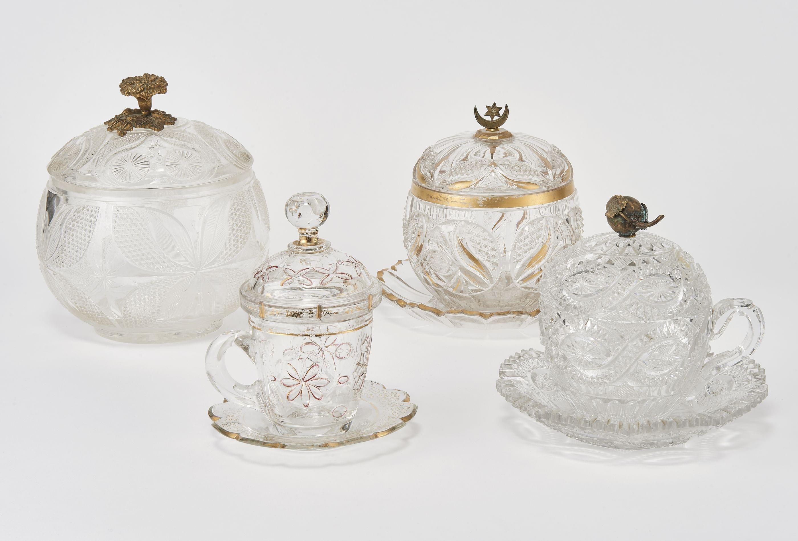 Verre taillé et en partie doré, l'une pour le marché Ottoman, H 18 à 22 cm