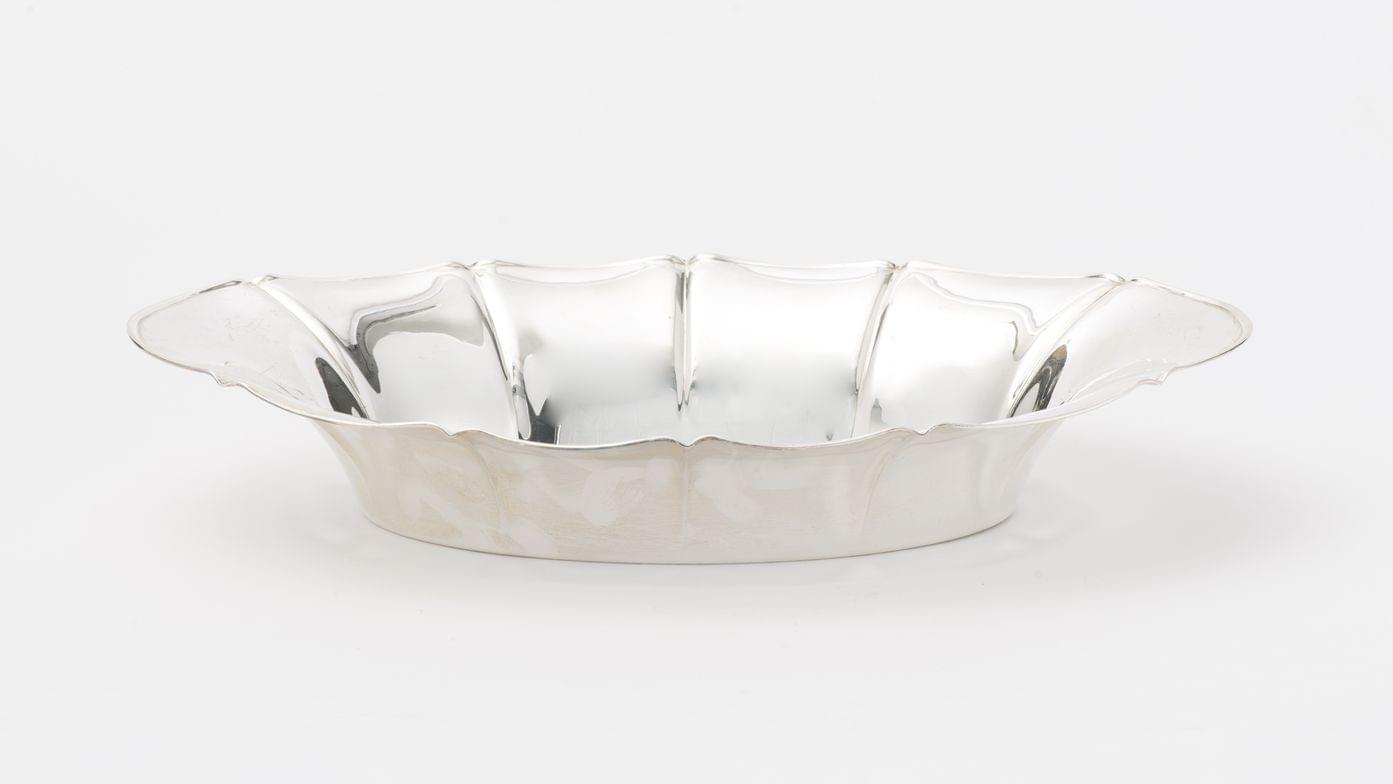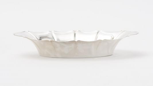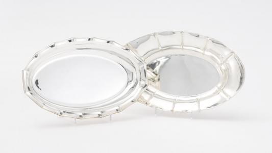 176. Plateau ovale martelé Art Déco orné de quatre volutes