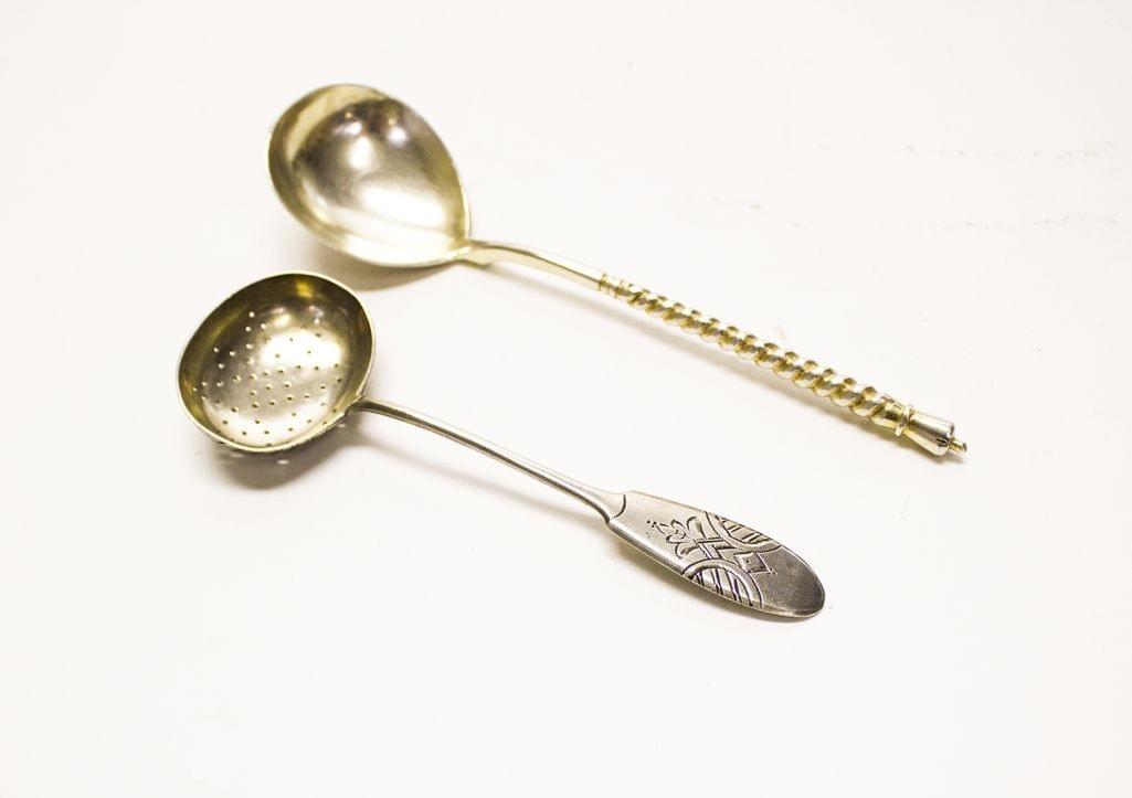 3310. 6 cuillères à thé à manche torsadé et décor de villes russes