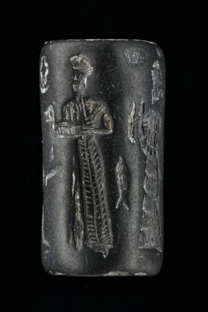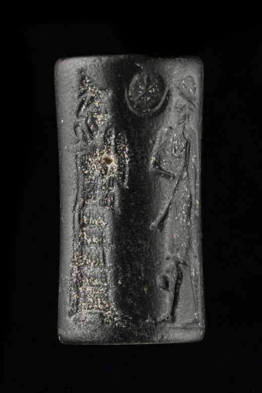 137. 2 sceaux-cylindres, hématite et marbre noir, paléo-babylonien, 2000-1600 av. JC