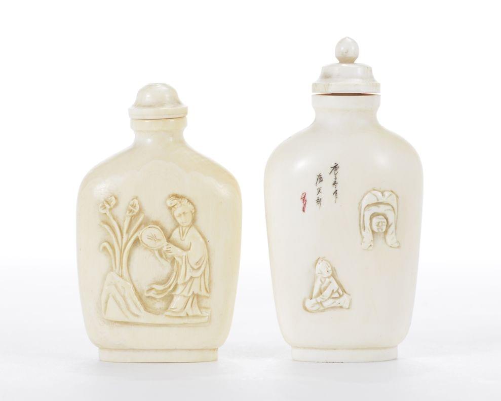 Intérieurs peints à décor de personnages, signées, Chine, H 7,5...