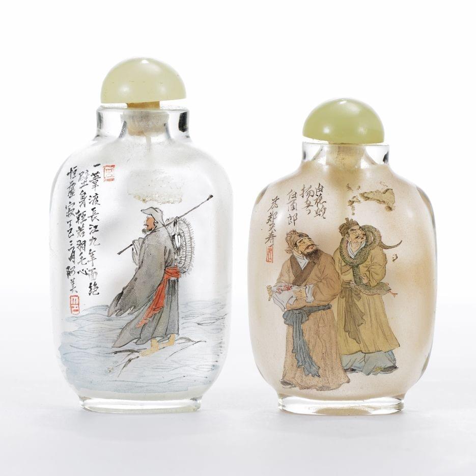 649. 2 tabatières ou flacons à priser en verre