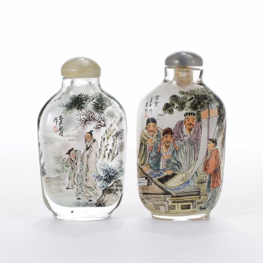 Intérieurs peints à décor de personnages, signées, Chine, H 7,5...