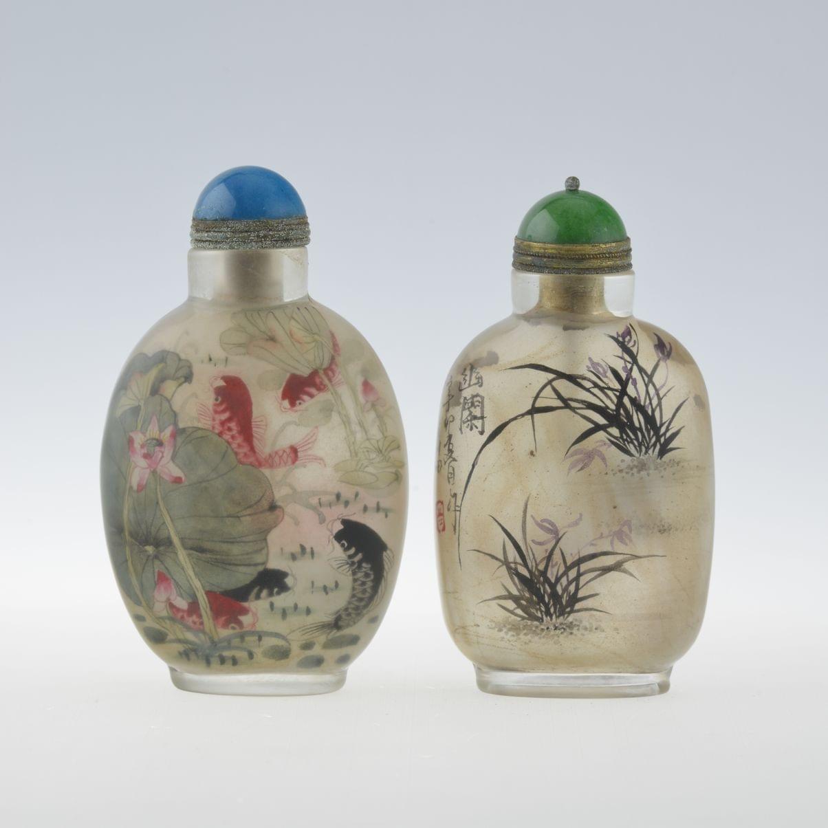 Verre, intérieurs peints à décor de bambous, signées, Chine, H 1...