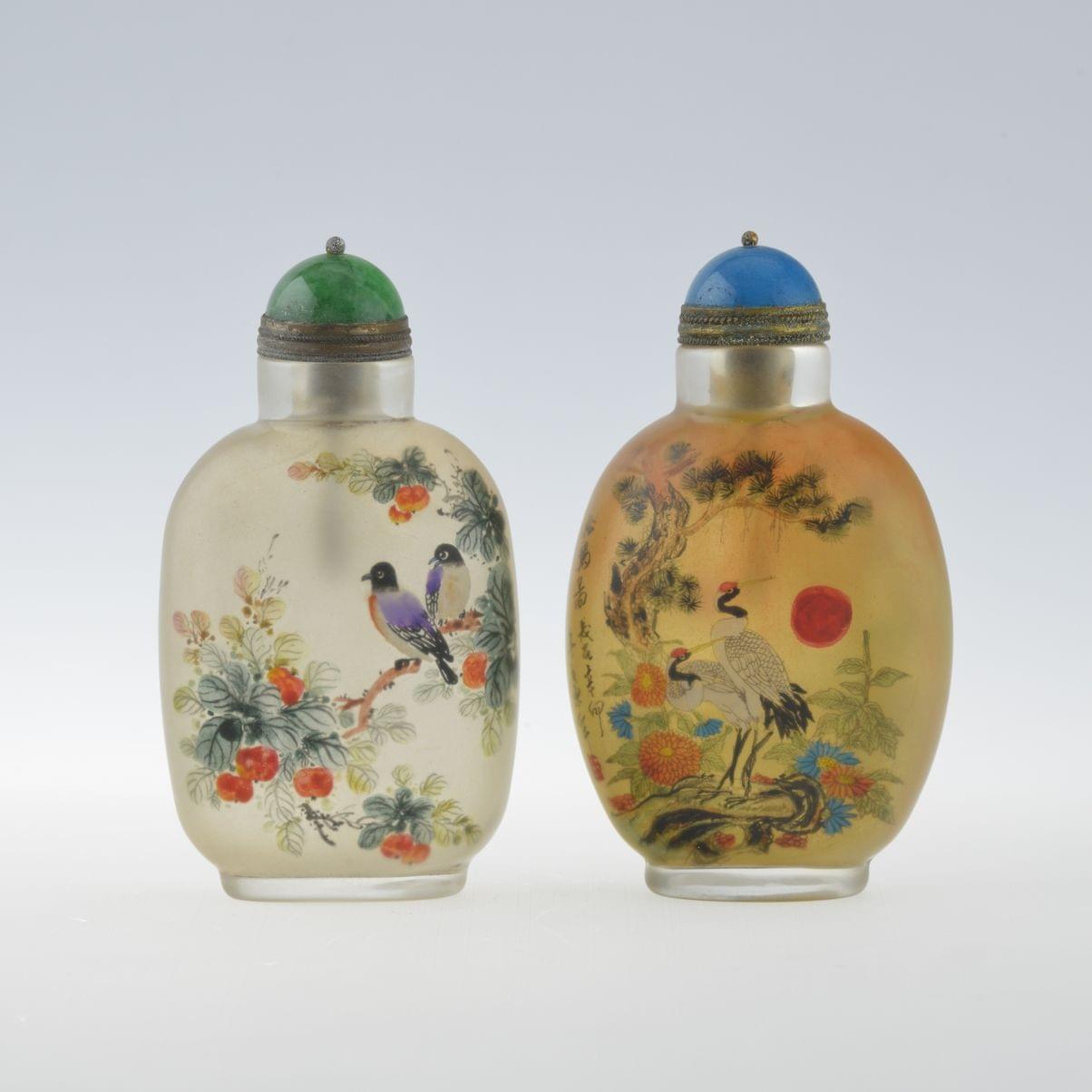 Verre, intérieurs peints à décor de bambous, signées, Chine, H 1...