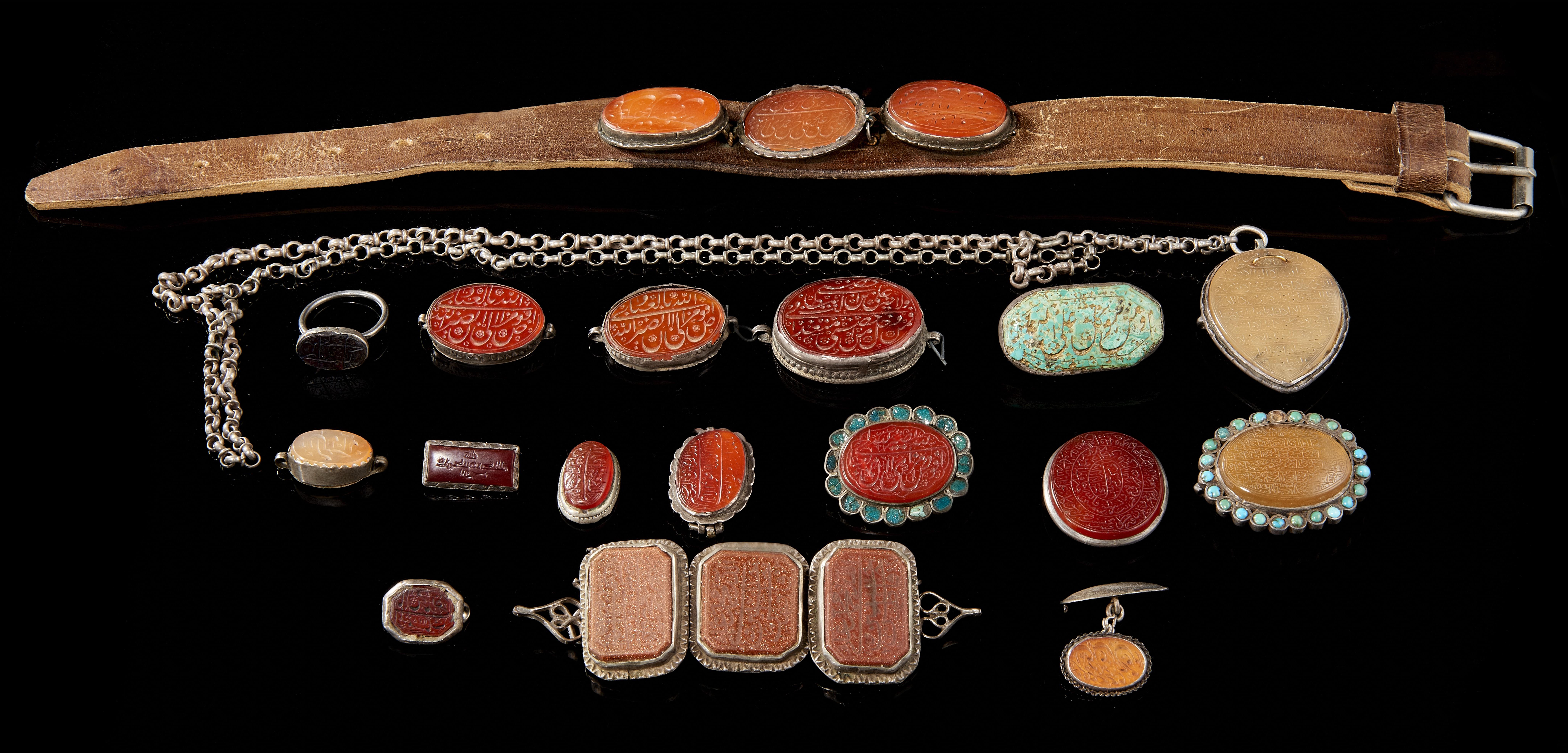 97. 20 sceaux montés sur métal et argent, Iran, époque Qajar (1786–1925)